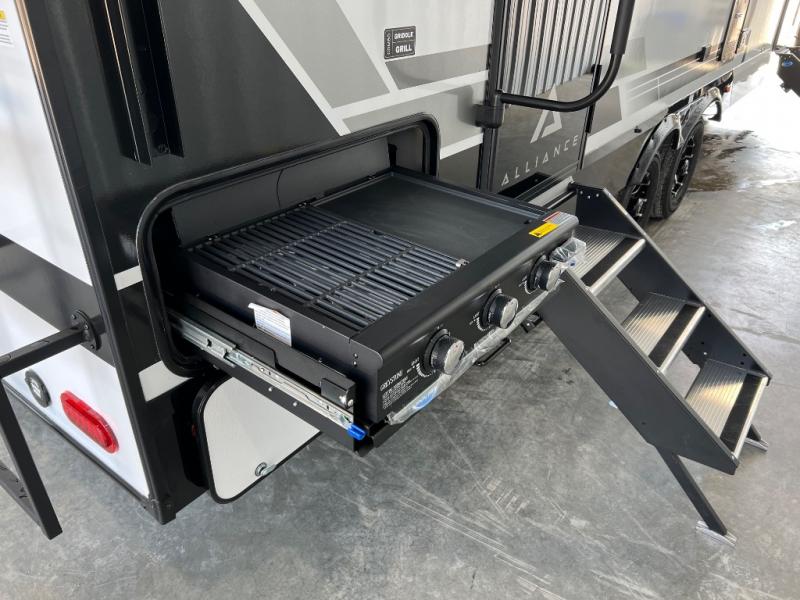 Form and function works together with every one of these Alliance RV Delta travel trailers! They are built with a walk-on roof with a seamless PVC roof covering, Mylar reinforced exterior seals, and a heated and enclosed underbelly to protect your unit in all seasons. The commercial grade vinyl flooring will be easy to clean and the oversized atrium windows throughout let in plenty of natural sunlight. With 62 cu. ft. of drop frame pass-through storage, you can bring along all of your essential camping gear plus it has USB charging for more convenience. There are many at home interior conveniences including a Bluetooth speaker, USB charging throughout, and even a pull-out kitchen trash can. Come find your favorite model today!