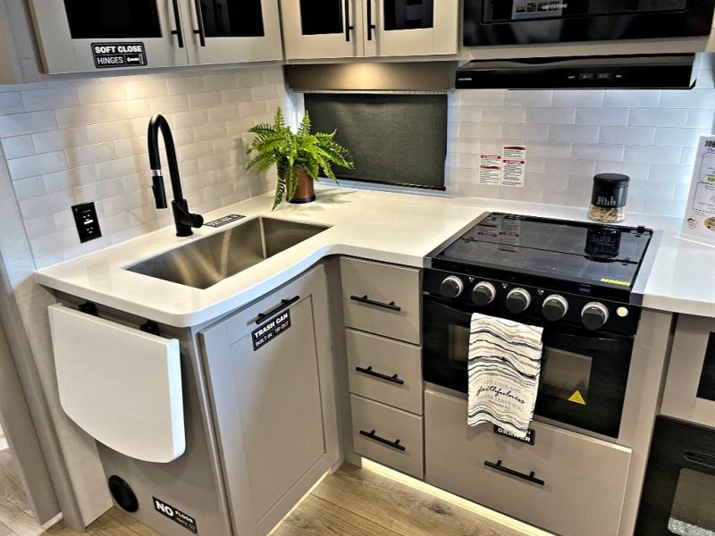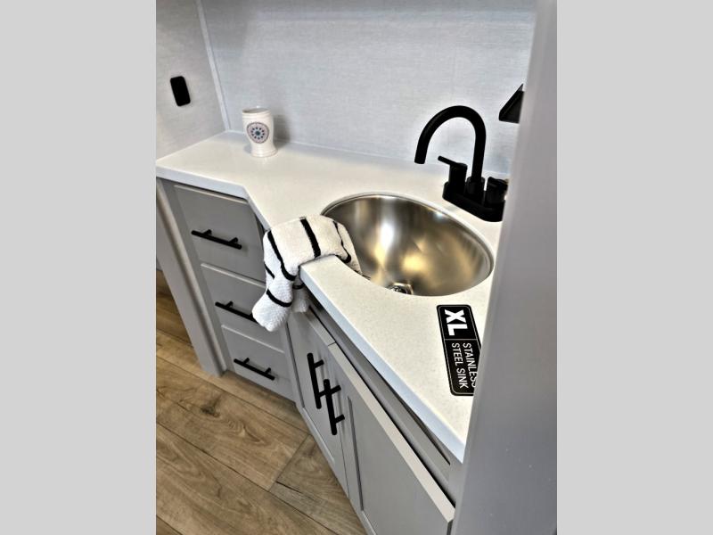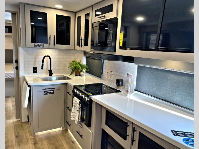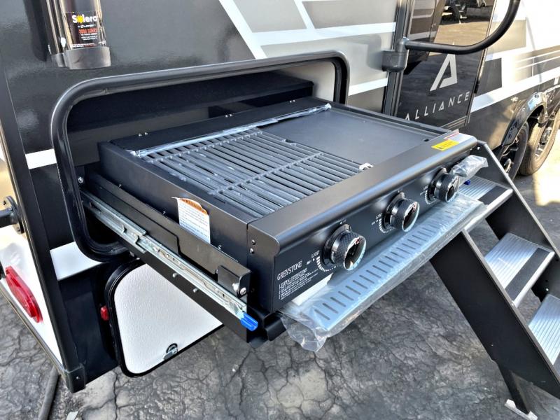 Form and function works together with every one of these Alliance RV Delta travel trailers! They are built with a walk-on roof with a seamless PVC roof covering, Mylar reinforced exterior seals, and a heated and enclosed underbelly to protect your unit in all seasons. The commercial grade vinyl flooring will be easy to clean and the oversized atrium windows throughout let in plenty of natural sunlight. With 62 cu. ft. of drop frame pass-through storage, you can bring along all of your essential camping gear plus it has USB charging for more convenience. There are many at home interior conveniences including a Bluetooth speaker, USB charging throughout, and even a pull-out kitchen trash can. Come find your favorite model today!