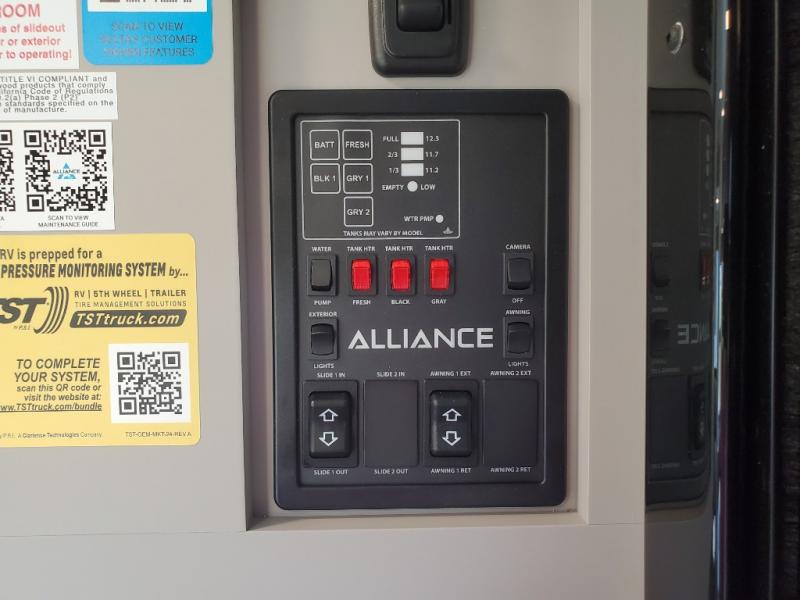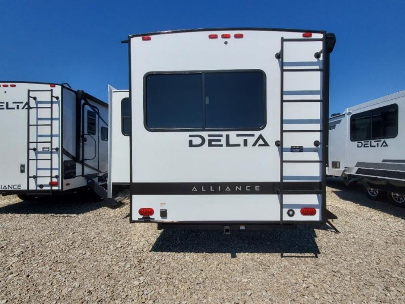Form and function works together with every one of these Alliance RV Delta travel trailers! They are built with a walk-on roof with a seamless PVC roof covering, Mylar reinforced exterior seals, and a heated and enclosed underbelly to protect your unit in all seasons. The commercial grade vinyl flooring will be easy to clean and the oversized atrium windows throughout let in plenty of natural sunlight. With 62 cu. ft. of drop frame pass-through storage, you can bring along all of your essential camping gear plus it has USB charging for more convenience. There are many at home interior conveniences including a Bluetooth speaker, USB charging throughout, and even a pull-out kitchen trash can. Come find your favorite model today!