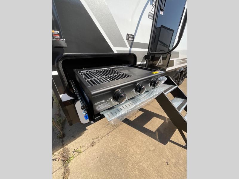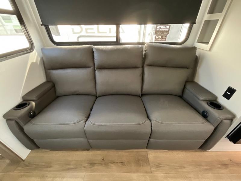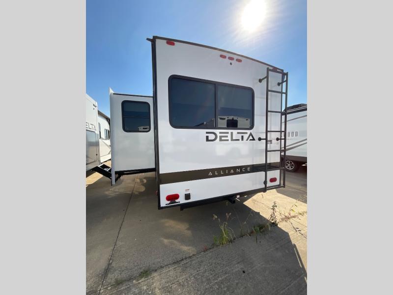 Form and function works together with every one of these Alliance RV Delta travel trailers! They are built with a walk-on roof with a seamless PVC roof covering, Mylar reinforced exterior seals, and a heated and enclosed underbelly to protect your unit. The commercial grade vinyl flooring will be easy to clean, and the oversized atrium windows throughout let in plenty of natural sunlight. With 62 cu. ft. of drop frame pass-through storage, you can bring along all of your essential camping gear plus it has USB charging for more convenience. There are many at home interior conveniences including a Bluetooth speaker, USB charging throughout, and even a pull-out kitchen trash can. Come find your favorite model today!