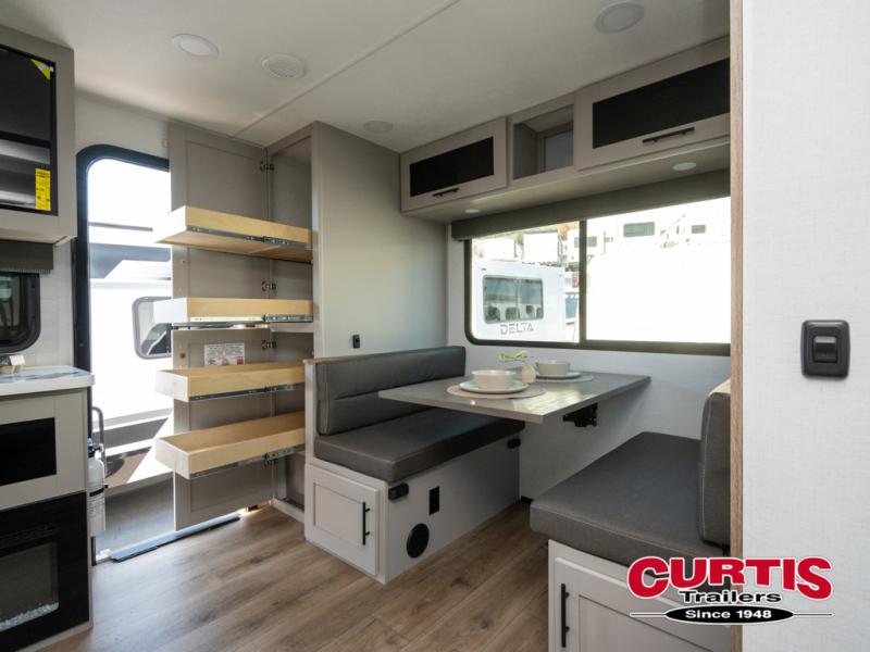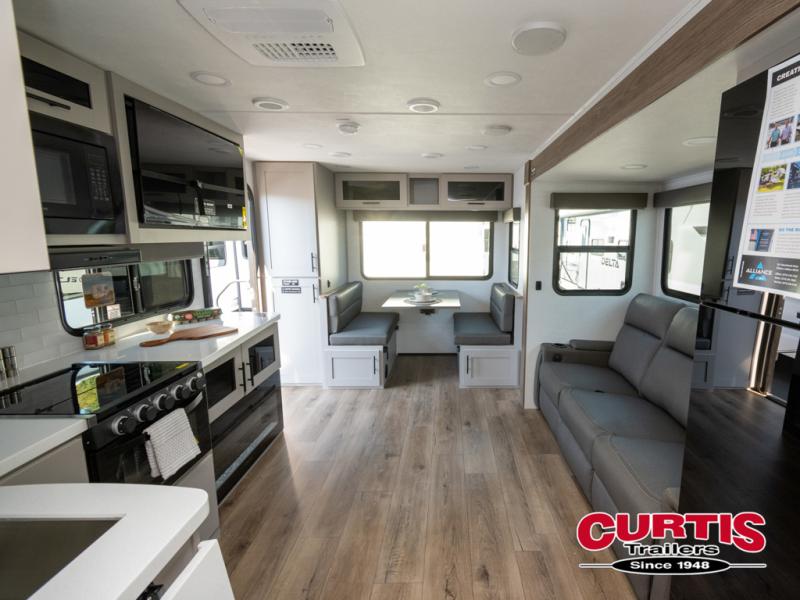 Form and function works together with every one of these Alliance RV Delta travel trailers! They are built with a walk-on roof with a seamless PVC roof covering, Mylar reinforced exterior seals, and a heated and enclosed underbelly to protect your unit in all seasons. The commercial grade vinyl flooring will be easy to clean and the oversized atrium windows throughout let in plenty of natural sunlight. With 62 cu. ft. of drop frame pass-through storage, you can bring along all of your essential camping gear plus it has USB charging for more convenience. There are many at home interior conveniences including a Bluetooth speaker, USB charging throughout, and even a pull-out kitchen trash can. Come find your favorite model today!