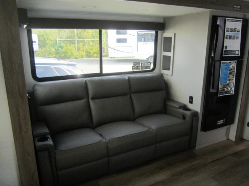 Form and function work together with every one of these Alliance RV Delta travel trailers! They are built with a walk-on roof with a seamless PVC roof covering, Mylar reinforced exterior seals, and a heated and enclosed underbelly to protect your unit. The commercial grade vinyl flooring will be easy to clean, and the oversized atrium windows throughout let in plenty of natural sunlight. With 62 cu. ft. of drop frame pass-through storage, you can bring along all of your essential camping gear plus it has USB charging for more convenience. There are many at home interior conveniences including a Bluetooth speaker, USB charging throughout, and even a pull-out kitchen trash can. Come find your favorite model today!