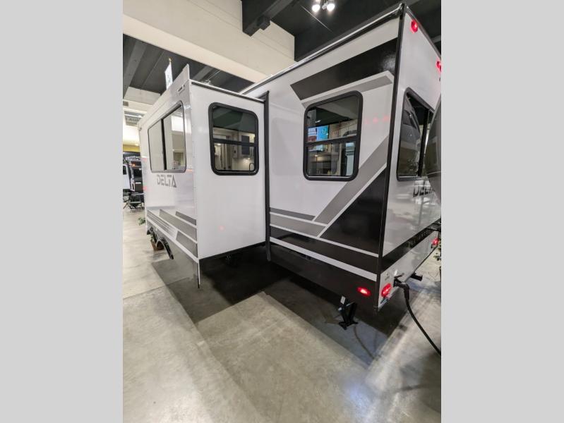 Form and function work together with every one of these Alliance RV Delta travel trailers! They are built with a walk-on roof with a seamless PVC roof covering, Mylar reinforced exterior seals, and a heated and enclosed underbelly to protect your unit. The commercial grade vinyl flooring will be easy to clean, and the oversized atrium windows throughout let in plenty of natural sunlight. With 62 cu. ft. of drop frame pass-through storage, you can bring along all of your essential camping gear plus it has USB charging for more convenience. There are many at home interior conveniences including a Bluetooth speaker, USB charging throughout, and even a pull-out kitchen trash can. Come find your favorite model today!