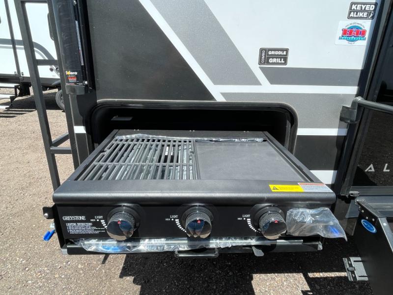 Form and function work together with every one of these Alliance RV Delta travel trailers! They are built with a walk-on roof with a seamless PVC roof covering, Mylar reinforced exterior seals, and a heated and enclosed underbelly to protect your unit. The commercial grade vinyl flooring will be easy to clean, and the oversized atrium windows throughout let in plenty of natural sunlight. With 62 cu. ft. of drop frame pass-through storage, you can bring along all of your essential camping gear plus it has USB charging for more convenience. There are many at home interior conveniences including a Bluetooth speaker, USB charging throughout, and even a pull-out kitchen trash can. Come find your favorite model today!
