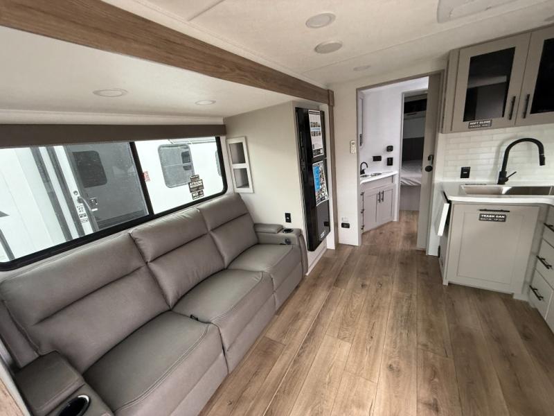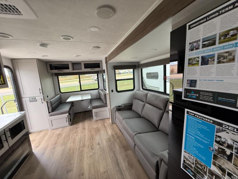 Form and function work together with every one of these Alliance RV Delta travel trailers! They are built with a walk-on roof with a seamless PVC roof covering, Mylar reinforced exterior seals, and a heated and enclosed underbelly to protect your unit. The commercial grade vinyl flooring will be easy to clean, and the oversized atrium windows throughout let in plenty of natural sunlight. With 62 cu. ft. of drop frame pass-through storage, you can bring along all of your essential camping gear plus it has USB charging for more convenience. There are many at home interior conveniences including a Bluetooth speaker, USB charging throughout, and even a pull-out kitchen trash can. Come find your favorite model today!