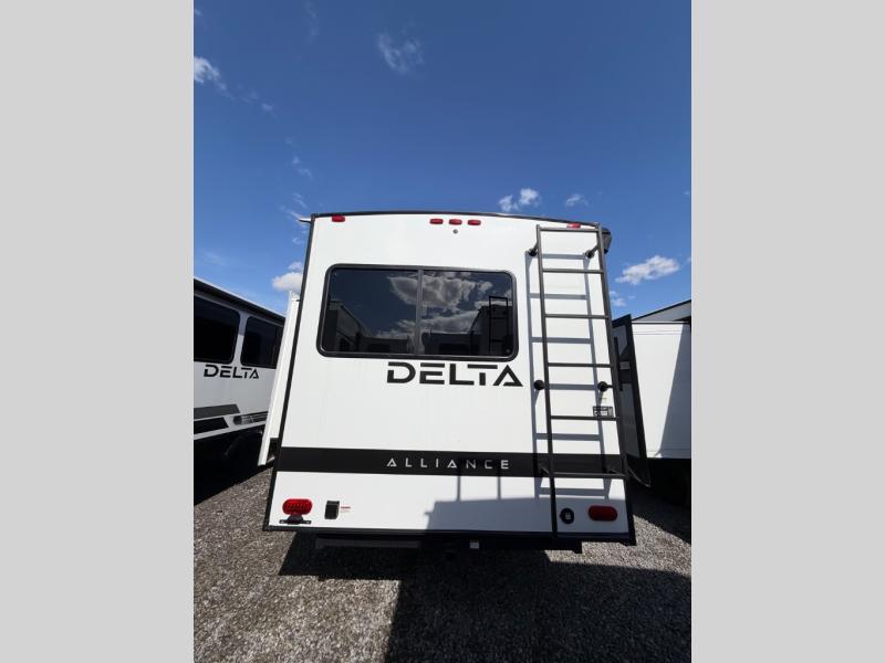 Form and function work together with every one of these Alliance RV Delta travel trailers! They are built with a walk-on roof with a seamless PVC roof covering, Mylar reinforced exterior seals, and a heated and enclosed underbelly to protect your unit. The commercial grade vinyl flooring will be easy to clean, and the oversized atrium windows throughout let in plenty of natural sunlight. With 62 cu. ft. of drop frame pass-through storage, you can bring along all of your essential camping gear plus it has USB charging for more convenience. There are many at home interior conveniences including a Bluetooth speaker, USB charging throughout, and even a pull-out kitchen trash can. Come find your favorite model today!