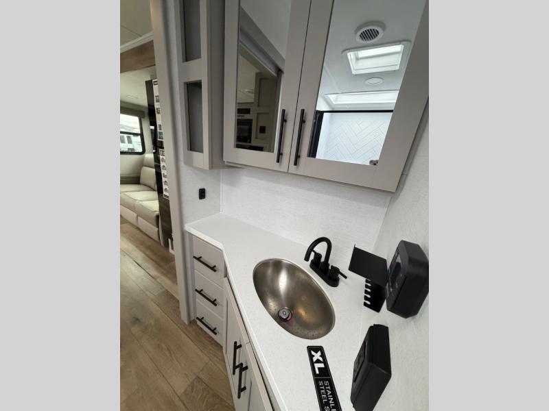 Form and function work together with every one of these Alliance RV Delta travel trailers! They are built with a walk-on roof with a seamless PVC roof covering, Mylar reinforced exterior seals, and a heated and enclosed underbelly to protect your unit. The commercial grade vinyl flooring will be easy to clean, and the oversized atrium windows throughout let in plenty of natural sunlight. With 62 cu. ft. of drop frame pass-through storage, you can bring along all of your essential camping gear plus it has USB charging for more convenience. There are many at home interior conveniences including a Bluetooth speaker, USB charging throughout, and even a pull-out kitchen trash can. Come find your favorite model today!