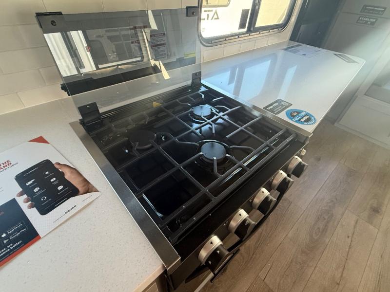 Form and function work together with every one of these Alliance RV Delta travel trailers! They are built with a walk-on roof with a seamless PVC roof covering, Mylar reinforced exterior seals, and a heated and enclosed underbelly to protect your unit. The commercial grade vinyl flooring will be easy to clean, and the oversized atrium windows throughout let in plenty of natural sunlight. With 62 cu. ft. of drop frame pass-through storage, you can bring along all of your essential camping gear plus it has USB charging for more convenience. There are many at home interior conveniences including a Bluetooth speaker, USB charging throughout, and even a pull-out kitchen trash can. Come find your favorite model today!