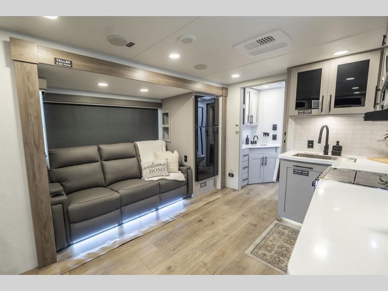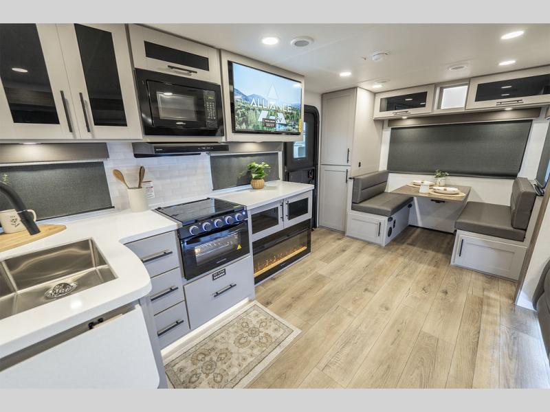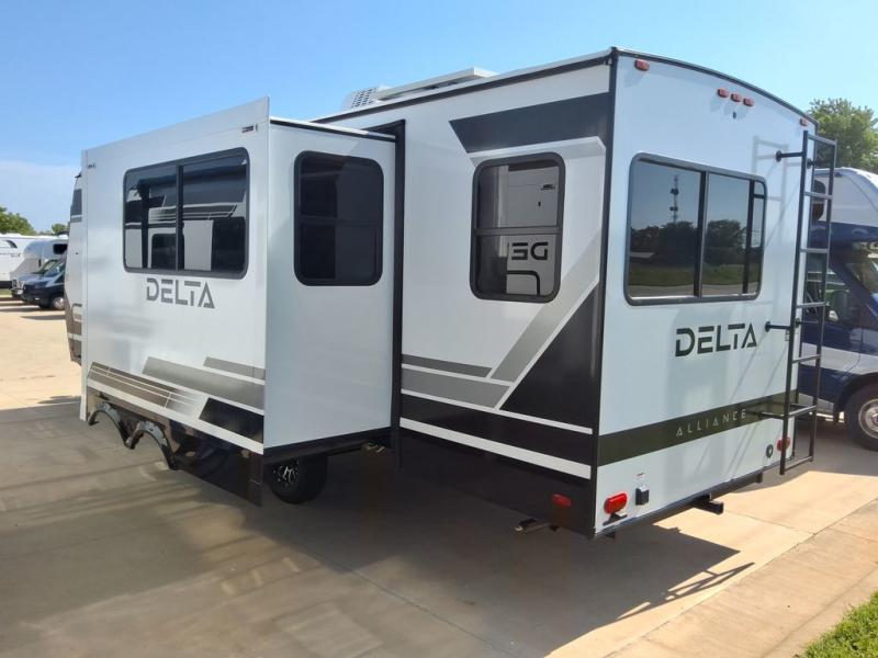 Form and function work together with every one of these Alliance RV Delta travel trailers! They are built with a walk-on roof with a seamless PVC roof covering, Mylar reinforced exterior seals, and a heated and enclosed underbelly to protect your unit. The commercial grade vinyl flooring will be easy to clean, and the oversized atrium windows throughout let in plenty of natural sunlight. With 62 cu. ft. of drop frame pass-through storage, you can bring along all of your essential camping gear plus it has USB charging for more convenience. There are many at home interior conveniences including a Bluetooth speaker, USB charging throughout, and even a pull-out kitchen trash can. Come find your favorite model today!