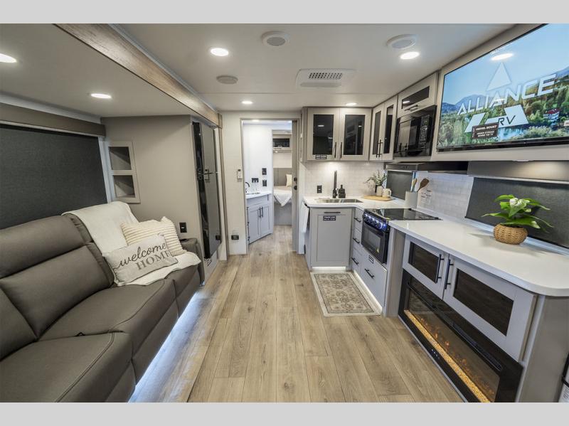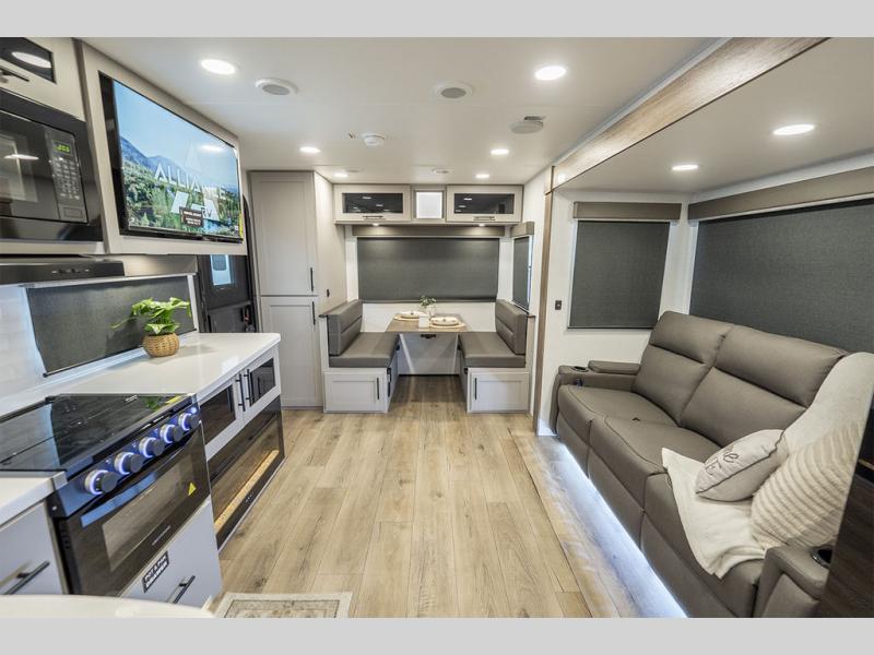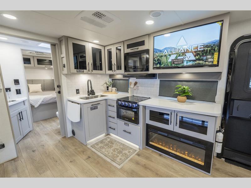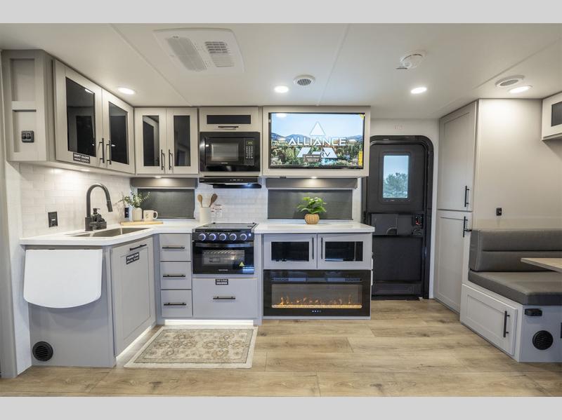 Form and function work together with every one of these Alliance RV Delta travel trailers! They are built with a walk-on roof with a seamless PVC roof covering, Mylar reinforced exterior seals, and a heated and enclosed underbelly to protect your unit. The commercial grade vinyl flooring will be easy to clean, and the oversized atrium windows throughout let in plenty of natural sunlight. With 62 cu. ft. of drop frame pass-through storage, you can bring along all of your essential camping gear plus it has USB charging for more convenience. There are many at home interior conveniences including a Bluetooth speaker, USB charging throughout, and even a pull-out kitchen trash can. Come find your favorite model today!
