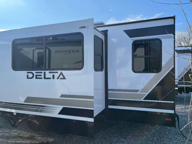 Delta Convenient Camping Package 62 Cu Ft of Drop Frame Pass Through Storage, Exterior Switches for Slideout and Awning Control, Dual Convenience Centers, Full Size 6' Camping Table, Multiple Location Hot/Cold Spray Ports, Full Width Oversized Exterior Ladder w/ built in Towel Rack, USB Charging in Pass Through, Hidden Pull Out Kitchen Trash Can (N/A 321BH and 274RKW), Carpet Free Interior, Slide Box Exterior Storage (most models), 12 Volt Heat Pads on Tanks, 2" Accessory Hitch, Solid Triple Entry Steps, Easy Access Water Pump for Winterization