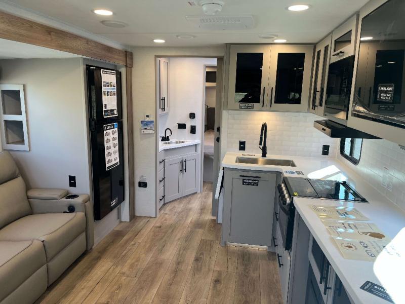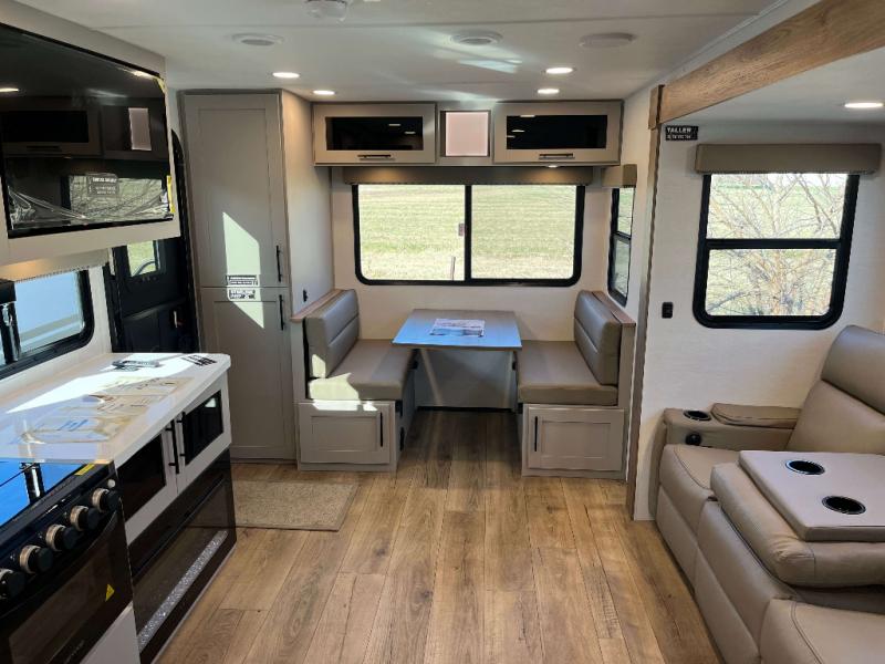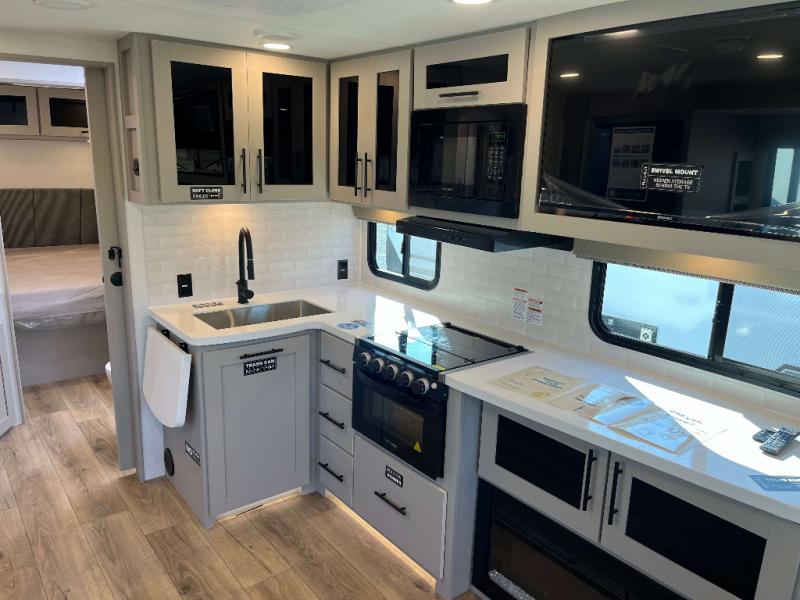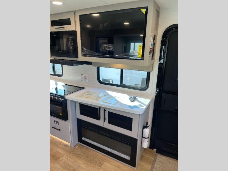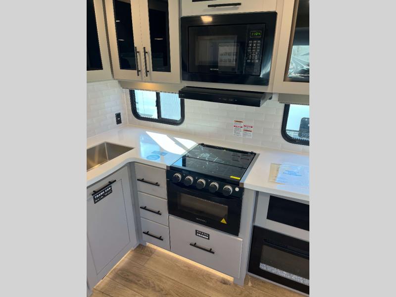 Goodyear Endurance Tires, Aluminum Rims w/ Spare Tire and Carrier, Keyed Alike Compartment Doors, Oversized Atrium Windows Throughout, Smart TV w/ Swing Arm, Walk on Roof w/ Seamless PVC Roof Covering, Commercial Grade Vinyl Flooring, Residential Cabinet Doors w/ Magnetic Catch, Soft Close Hidden Hinges, Porcelain Toilet w/ Foot Flush, Roller Shades Throughout, Residential Can Style LED Ceiling Lights, Matte Black Cabinetry Hardware, No In-Floor Heat Vents, Mylar Reinforced Exterior Seals, LP Quick Connect, Heated and Enclosed Underbelly, Black Tank Flush, Pre-Wired for Back Up Camera, Bluetooth Speaker, Tire Monitor Prep, Color Coded and Numbered Wiring, Shut Off Valves at Major Plumbing Locations, Slide Topper Prep, Starlink Prep, USB Charge Ports Throughout