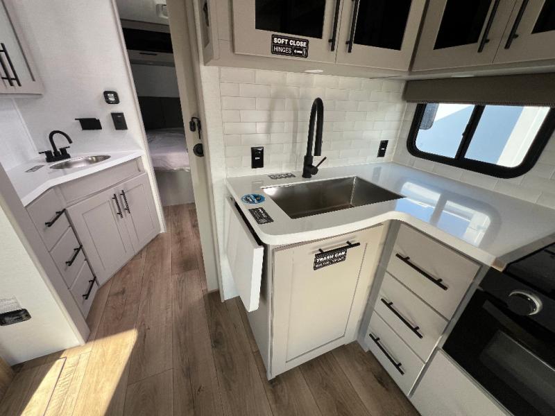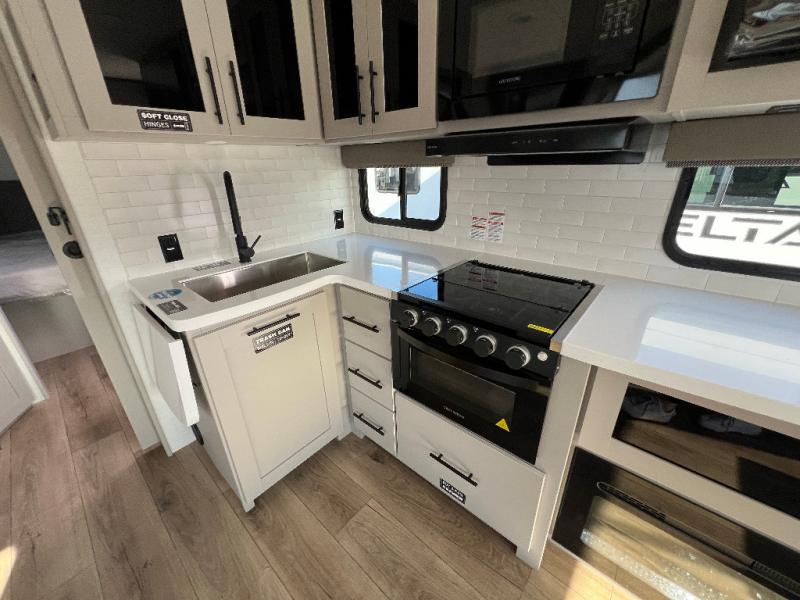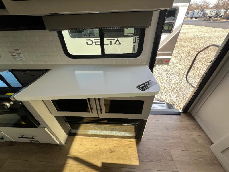 Form and function work together with every one of these Alliance RV Delta travel trailers! They are built with a walk-on roof with a seamless PVC roof covering, Mylar reinforced exterior seals, and a heated and enclosed underbelly to protect your unit. The commercial grade vinyl flooring will be easy to clean, and the oversized atrium windows throughout let in plenty of natural sunlight. With 62 cu. ft. of drop frame pass-through storage, you can bring along all of your essential camping gear plus it has USB charging for more convenience. There are many at home interior conveniences including a Bluetooth speaker, USB charging throughout, and even a pull-out kitchen trash can. Come find your favorite model today!