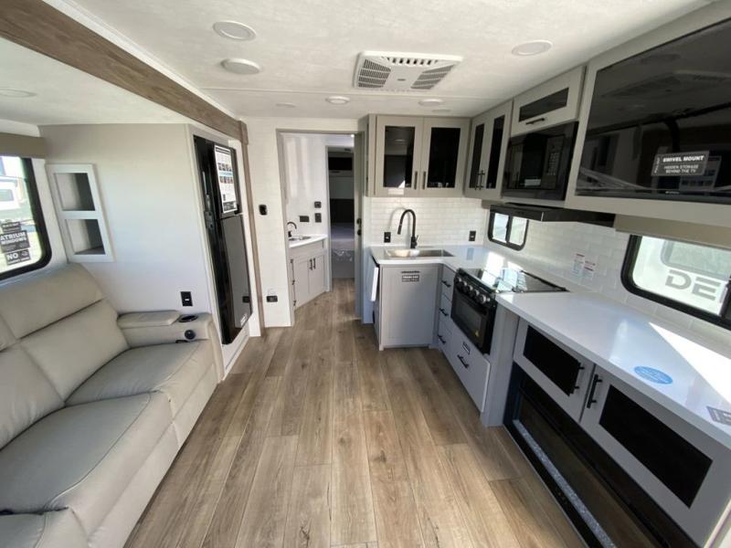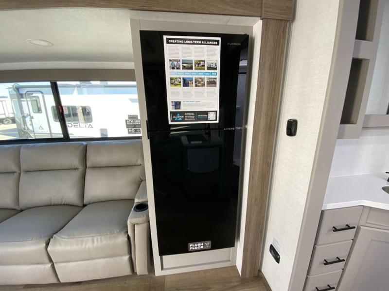 Form and function work together with every one of these Alliance RV Delta travel trailers! They are built with a walk-on roof with a seamless PVC roof covering, Mylar reinforced exterior seals, and a heated and enclosed underbelly to protect your unit. The commercial grade vinyl flooring will be easy to clean, and the oversized atrium windows throughout let in plenty of natural sunlight. With 62 cu. ft. of drop frame pass-through storage, you can bring along all of your essential camping gear plus it has USB charging for more convenience. There are many at home interior conveniences including a Bluetooth speaker, USB charging throughout, and even a pull-out kitchen trash can. Come find your favorite model today!
