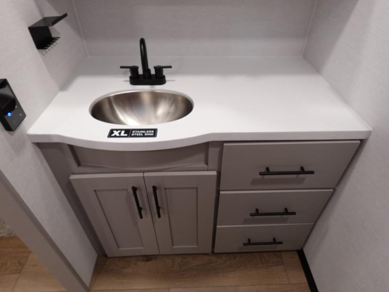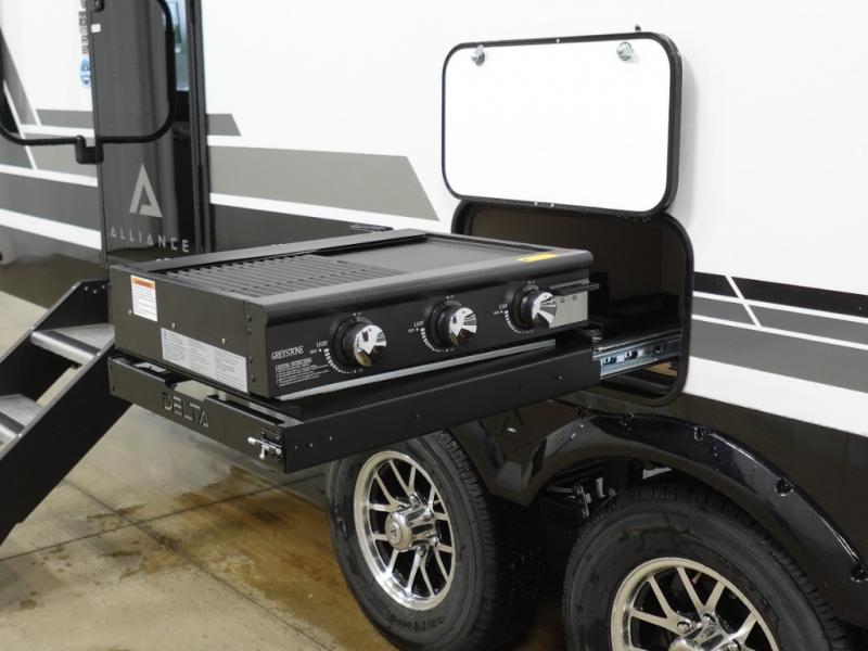 Form and function works together with every one of these Alliance RV Delta travel trailers! They are built with a walk-on roof with a seamless PVC roof covering, Mylar reinforced exterior seals, and a heated and enclosed underbelly to protect your unit in all seasons. The commercial grade vinyl flooring will be easy to clean and the oversized atrium windows throughout let in plenty of natural sunlight. With 62 cu. ft. of drop frame pass-through storage, you can bring along all of your essential camping gear plus it has USB charging for more convenience. There are many at home interior conveniences including a Bluetooth speaker, USB charging throughout, and even a pull-out kitchen trash can. Come find your favorite model today!