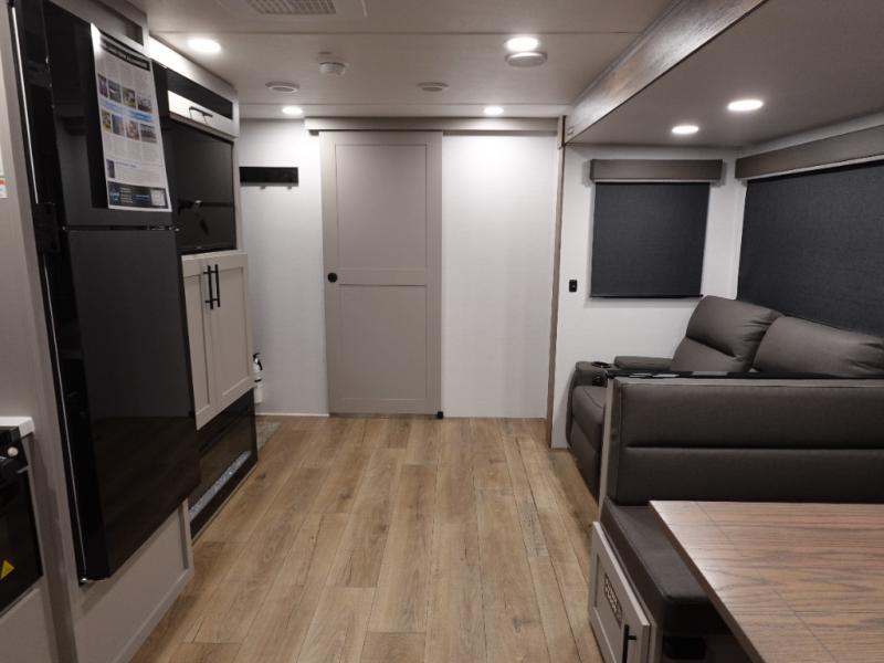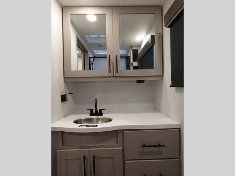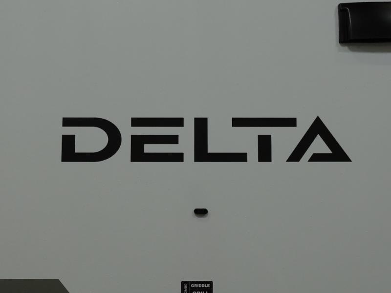 You will love all of your adventures with this Delta travel trailer in tow! This unit is perfect for a couple or even a family of four or six with a queen bed in the front private bedroom, and also using the sofa and U-shaped dinette once converted for more sleeping space. The U-shaped dinette is great for gathering for meals, a board game or game of cards, and the sofa is directly opposite a 40" HDTV which makes viewing enjoyable. You can easily prepare all of your favorite meals and snacks with the kitchen amenities provided inside. A three burner range allows you to easily cook indoors, or you can cook outside using the outdoor griddle/grill if you like. There is a 10 cu. ft. 12V refrigerator to keep all of your perishables and drinks nice and cold, plus a large sink for dishes and cleaning up, and a convenient pull-out trash can and flip-up counter extension as well. You will also appreciate the full rear bath featuring a 30" x 36" shower, toilet, vanity with sink, and linen cabinet for your towels and toiletries.