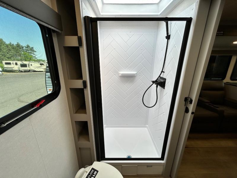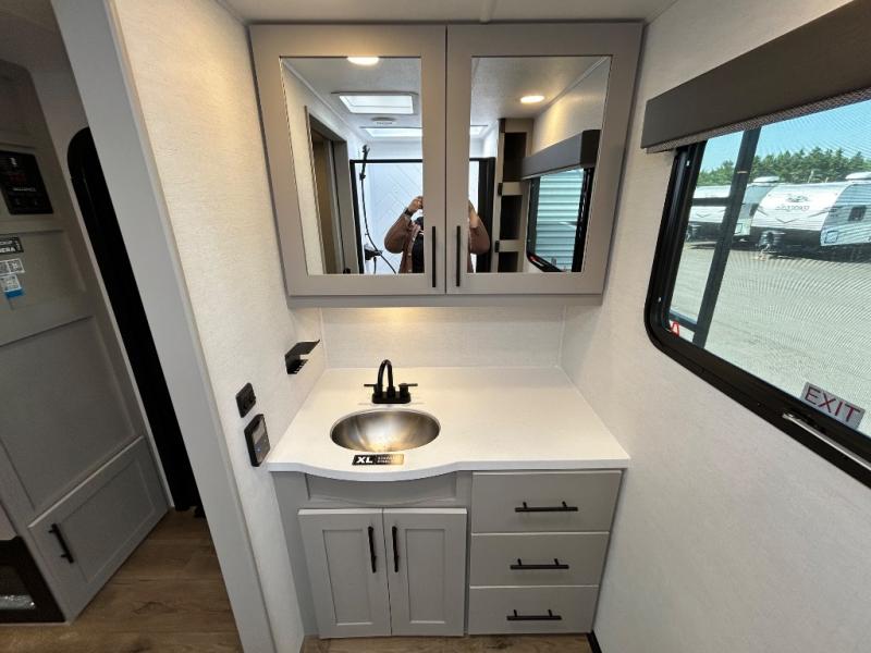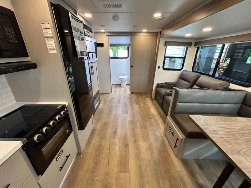 You will love all of your adventures with this Delta travel trailer in tow! This unit is perfect for a couple or even a family of four or six with a queen bed in the front private bedroom, and also using the sofa and U-shaped dinette once converted for more sleeping space. The U-shaped dinette is great for gathering for meals, a board game or game of cards, and the sofa is directly opposite a 40" HDTV which makes viewing enjoyable. You can easily prepare all of your favorite meals and snacks with the kitchen amenities provided inside. A three burner range allows you to easily cook indoors, or you can cook outside using the outdoor griddle/grill if you like. There is a 10 cu. ft. 12V refrigerator to keep all of your perishables and drinks nice and cold, plus a large sink for dishes and cleaning up, and a convenient pull-out trash can and flip-up counter extension as well. You will also appreciate the full rear bath featuring a 30" x 36" shower, toilet, vanity with sink, and linen cabinet for your towels and toiletries.