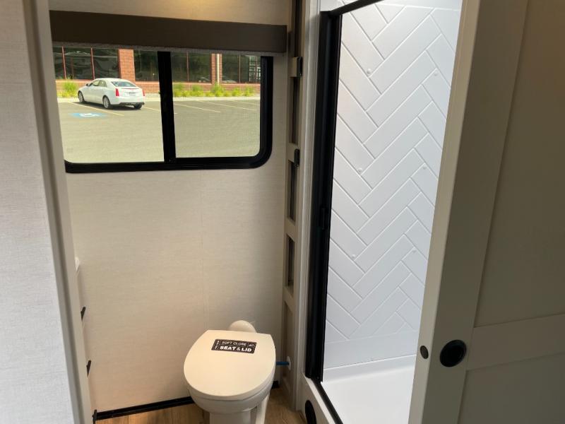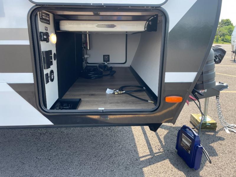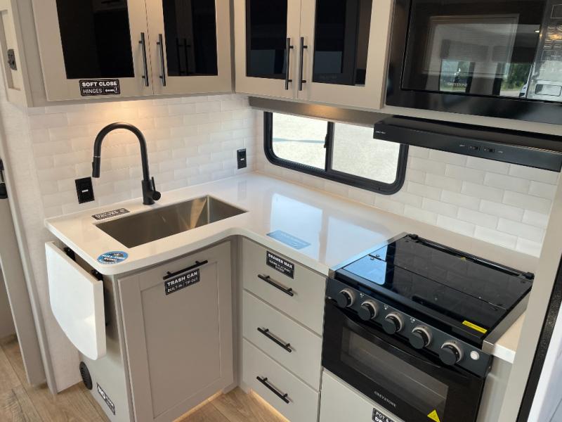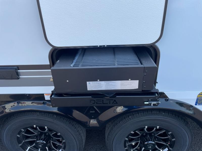 You will love all of your adventures with this Delta travel trailer in tow! This unit is perfect for a couple or even a family of four or six with a queen bed in the front private bedroom, and also using the sofa and U-shaped dinette once converted for more sleeping space. The U-shaped dinette is great for gathering for meals, a board game or game of cards, and the sofa is directly opposite a 40" HDTV which makes viewing enjoyable. You can easily prepare all of your favorite meals and snacks with the kitchen amenities provided inside. A three burner range allows you to easily cook indoors, or you can cook outside using the outdoor griddle/grill if you like. There is a 10 cu. ft. 12V refrigerator to keep all of your perishables and drinks nice and cold, plus a large sink for dishes and cleaning up, and a convenient pull-out trash can and flip-up counter extension as well. You will also appreciate the full rear bath featuring a 30" x 36" shower, toilet, vanity with sink, and linen cabinet for your towels and toiletries.