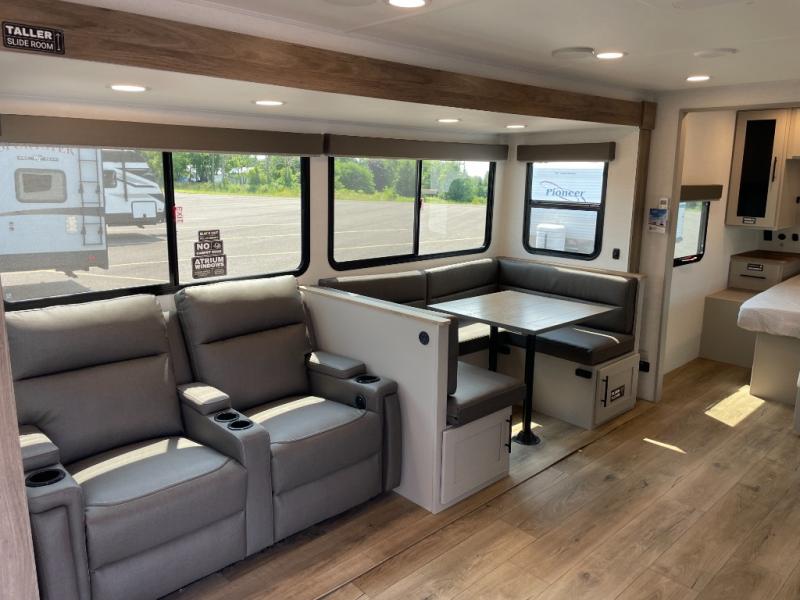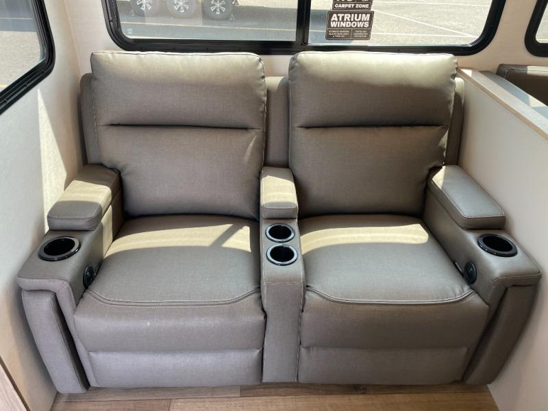 Form and function works together with every one of these Alliance RV Delta travel trailers! They are built with a walk-on roof with a seamless PVC roof covering, Mylar reinforced exterior seals, and a heated and enclosed underbelly to protect your unit in all seasons. The commercial grade vinyl flooring will be easy to clean and the oversized atrium windows throughout let in plenty of natural sunlight. With 62 cu. ft. of drop frame pass-through storage, you can bring along all of your essential camping gear plus it has USB charging for more convenience. There are many at home interior conveniences including a Bluetooth speaker, USB charging throughout, and even a pull-out kitchen trash can. Come find your favorite model today!