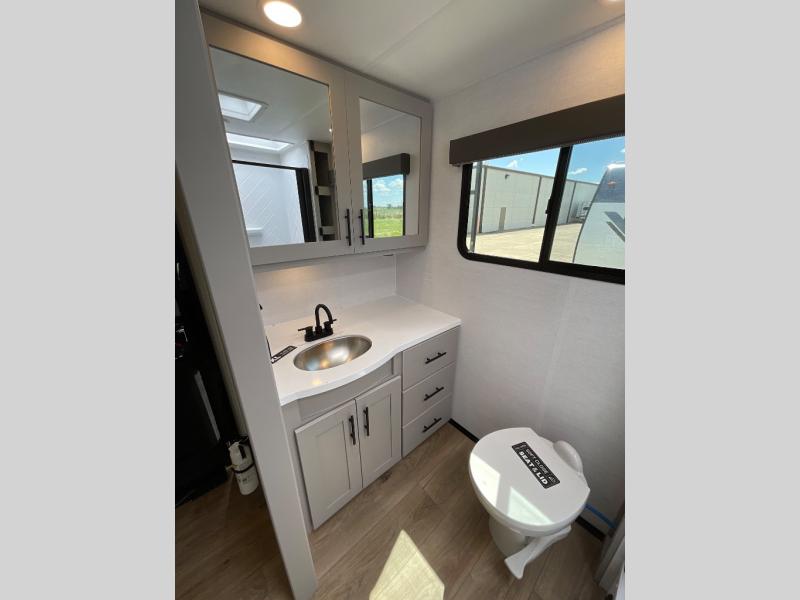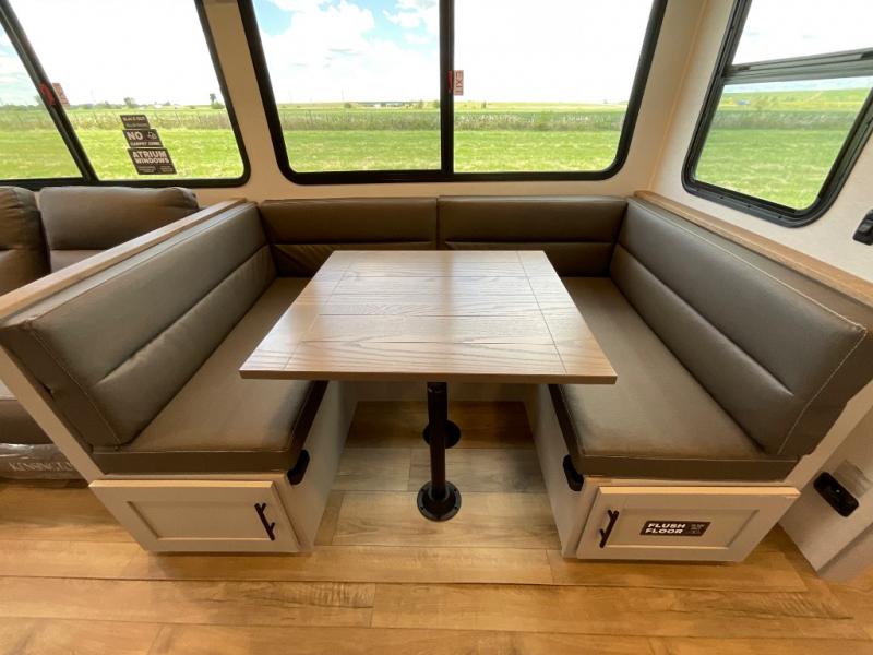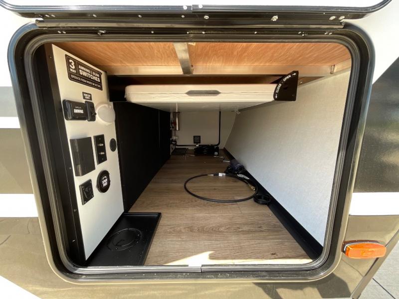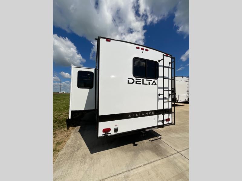 Form and function work together with every one of these Alliance RV Delta travel trailers! They are built with a walk-on roof with a seamless PVC roof covering, Mylar reinforced exterior seals, and a heated and enclosed underbelly to protect your unit. The commercial grade vinyl flooring will be easy to clean, and the oversized atrium windows throughout let in plenty of natural sunlight. With 62 cu. ft. of drop frame pass-through storage, you can bring along all of your essential camping gear plus it has USB charging for more convenience. There are many at home interior conveniences including a Bluetooth speaker, USB charging throughout, and even a pull-out kitchen trash can. Come find your favorite model today!