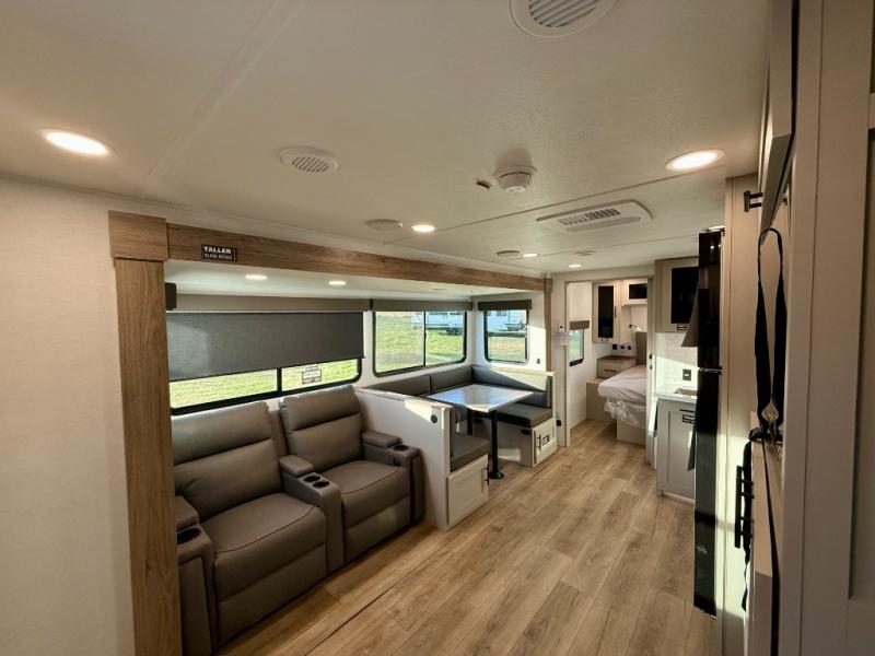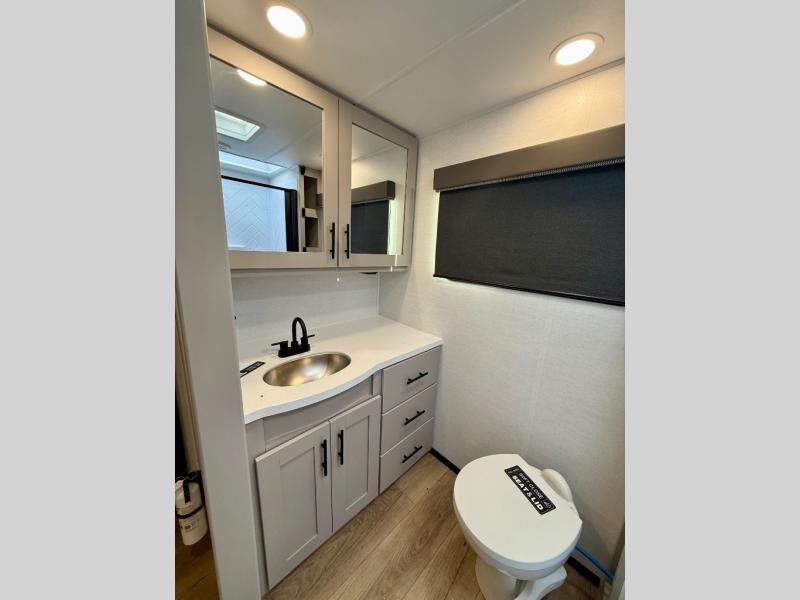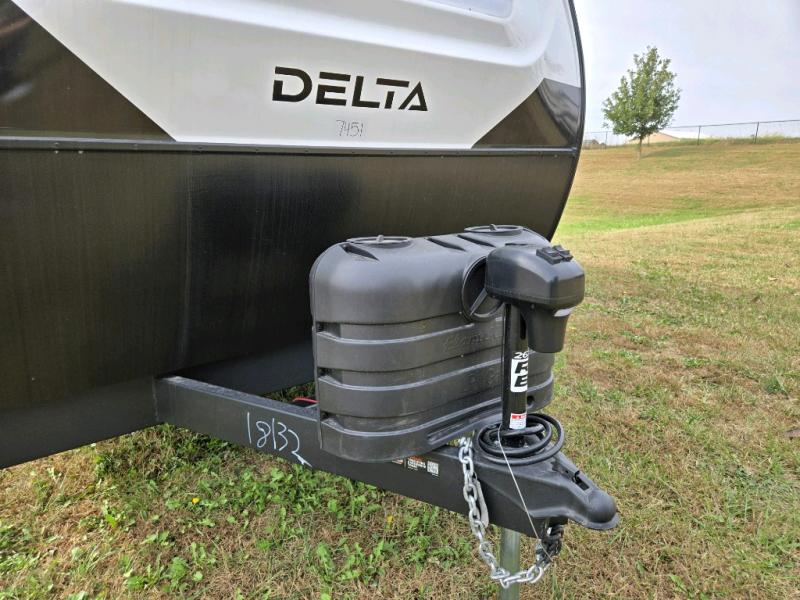 You will love all of your adventures with this Delta travel trailer in tow! This unit is perfect for a couple or even a family of four or six with a queen bed in the front private bedroom, and also using the sofa and U-shaped dinette once converted for more sleeping space. The U-shaped dinette is great for gathering for meals, a board game or game of cards, and the sofa is directly opposite a 40" HDTV which makes viewing enjoyable. You can easily prepare all of your favorite meals and snacks with the kitchen amenities provided inside. A three burner range allows you to easily cook indoors, or you can cook outside using the outdoor griddle/grill if you like. There is a 10 cu. ft. 12V refrigerator to keep all of your perishables and drinks nice and cold, plus a large sink for dishes and cleaning up, and a convenient pull-out trash can and flip-up counter extension as well. You will also appreciate the full rear bath featuring a 30" x 36" shower, toilet, vanity with sink, and linen cabinet for your towels and toiletries.