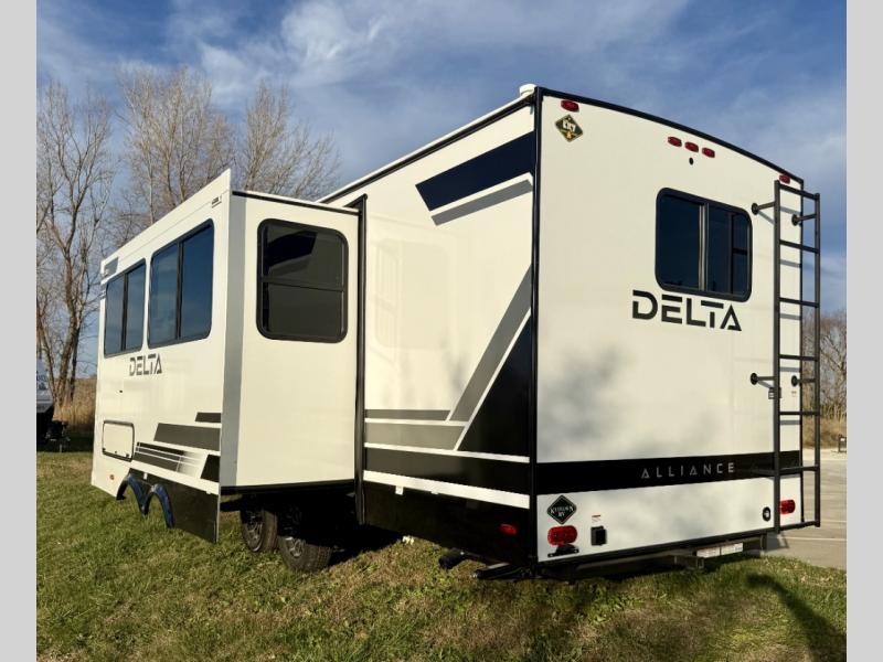 Form and function works together with every one of these Alliance RV Delta travel trailers! They are built with a walk-on roof with a seamless PVC roof covering, Mylar reinforced exterior seals, and a heated and enclosed underbelly to protect your unit in all seasons. The commercial grade vinyl flooring will be easy to clean and the oversized atrium windows throughout let in plenty of natural sunlight. With 62 cu. ft. of drop frame pass-through storage, you can bring along all of your essential camping gear plus it has USB charging for more convenience. There are many at home interior conveniences including a Bluetooth speaker, USB charging throughout, and even a pull-out kitchen trash can. Come find your favorite model today!
