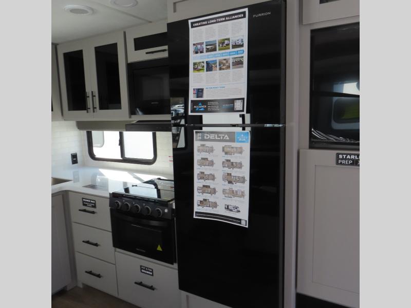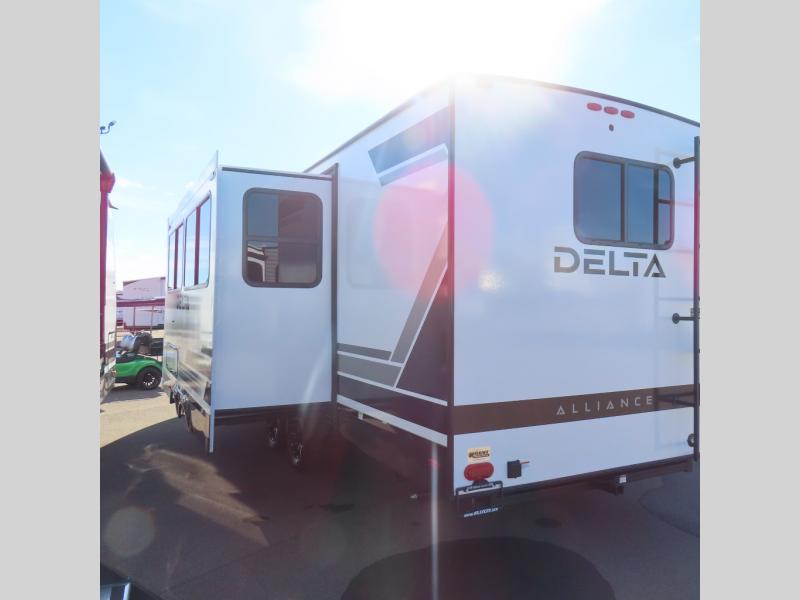 Form and function work together with every one of these Alliance RV Delta travel trailers! They are built with a walk-on roof with a seamless PVC roof covering, Mylar reinforced exterior seals, and a heated and enclosed underbelly to protect your unit. The commercial grade vinyl flooring will be easy to clean, and the oversized atrium windows throughout let in plenty of natural sunlight. With 62 cu. ft. of drop frame pass-through storage, you can bring along all of your essential camping gear plus it has USB charging for more convenience. There are many at home interior conveniences including a Bluetooth speaker, USB charging throughout, and even a pull-out kitchen trash can. Come find your favorite model today!