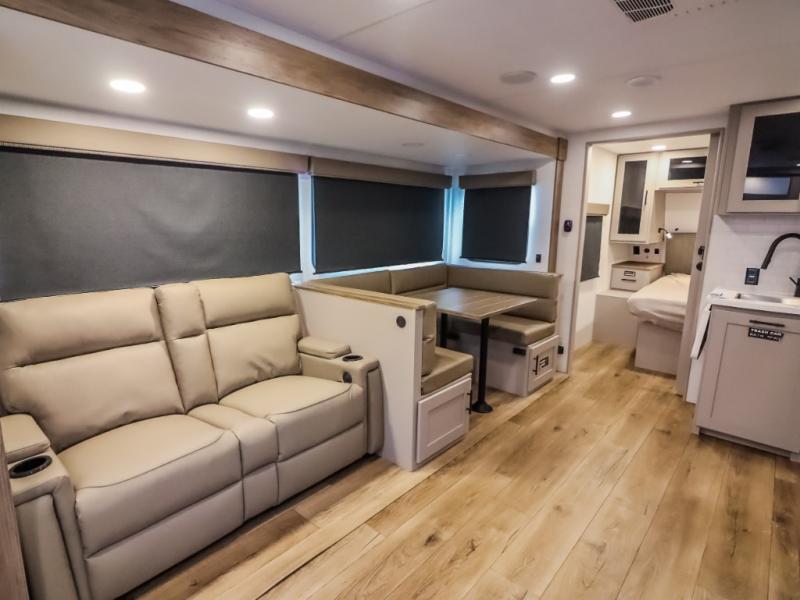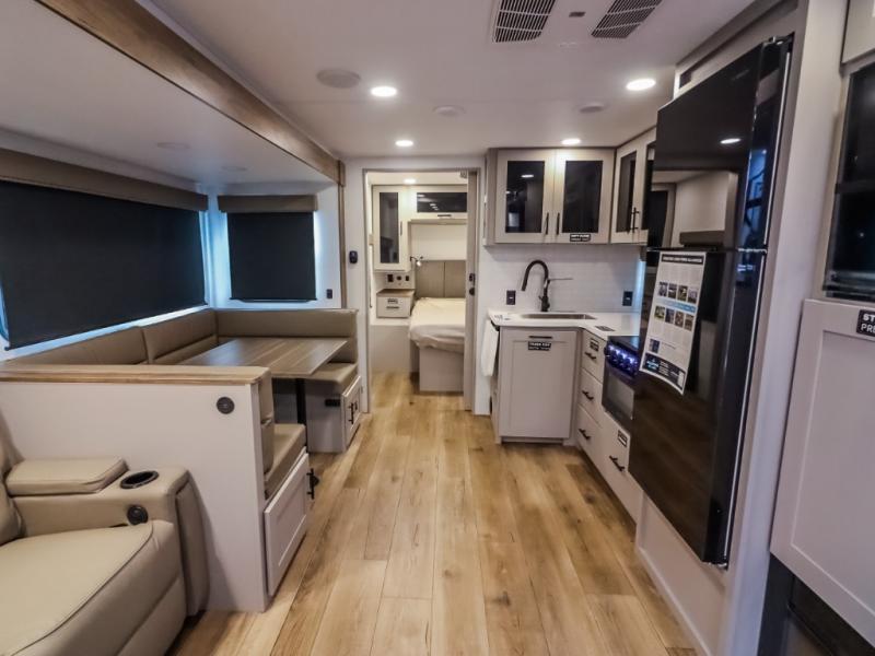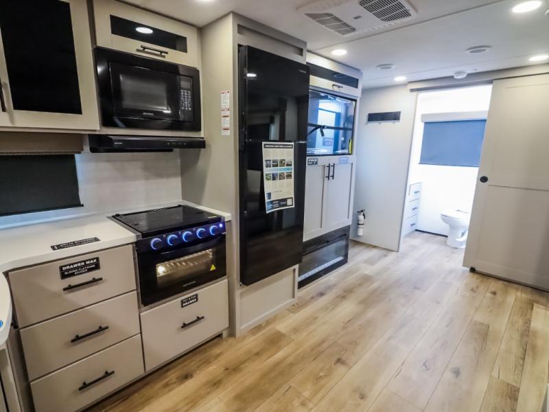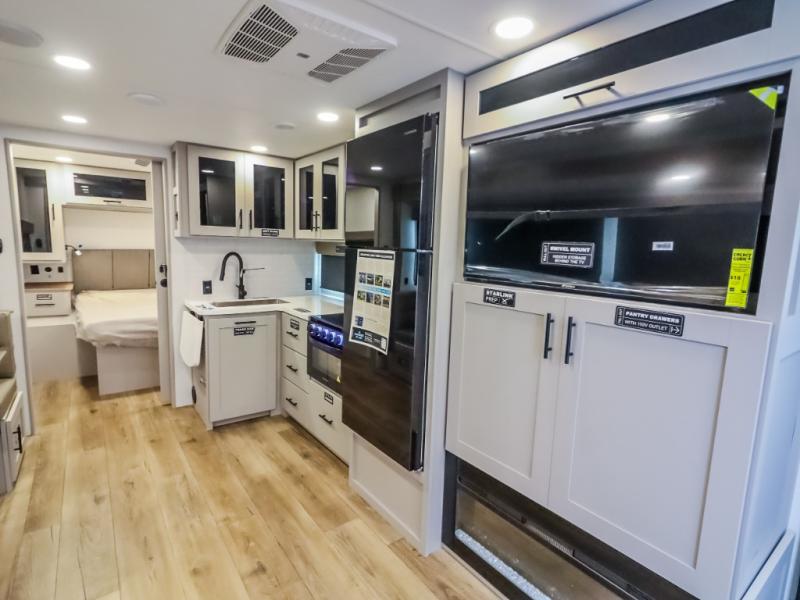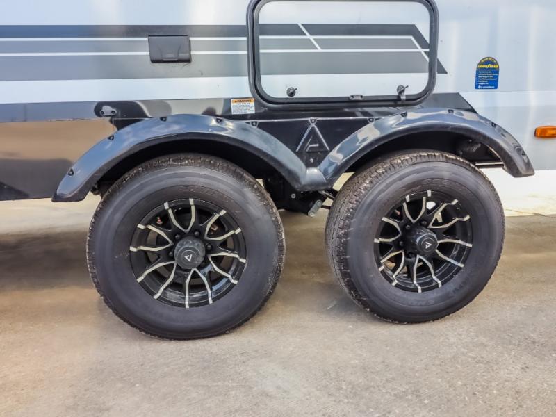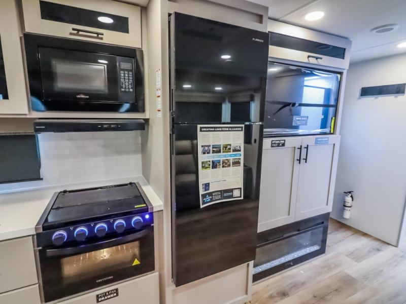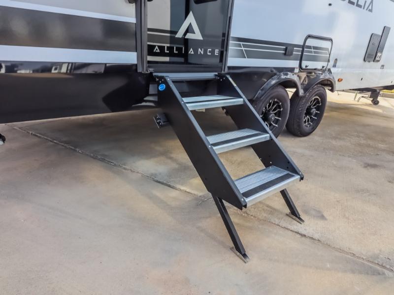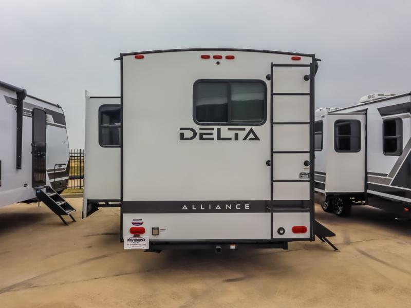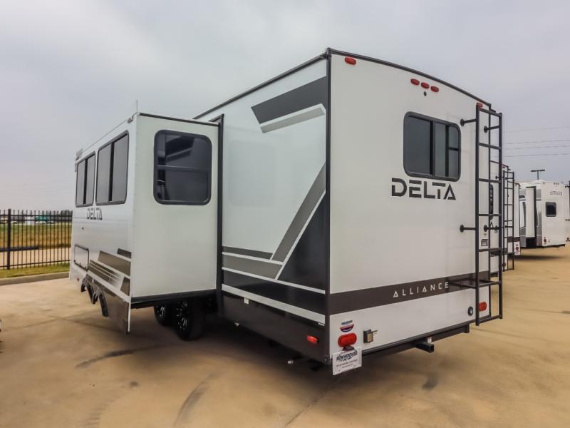 Form and function work together with every one of these Alliance RV Delta travel trailers! They are built with a walk-on roof with a seamless PVC roof covering, Mylar reinforced exterior seals, and a heated and enclosed underbelly to protect your unit. The commercial grade vinyl flooring will be easy to clean, and the oversized atrium windows throughout let in plenty of natural sunlight. With 62 cu. ft. of drop frame pass-through storage, you can bring along all of your essential camping gear plus it has USB charging for more convenience. There are many at home interior conveniences including a Bluetooth speaker, USB charging throughout, and even a pull-out kitchen trash can. Come find your favorite model today!