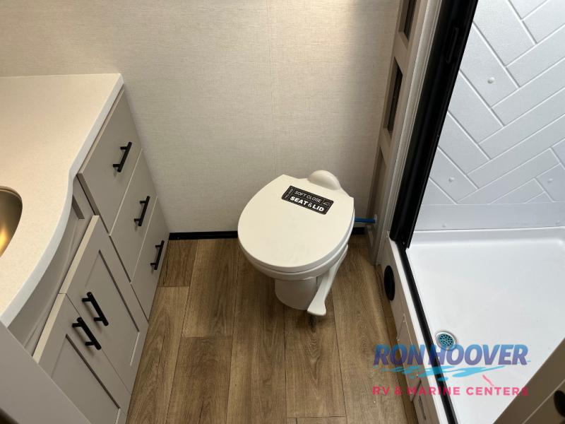 You will love all of your adventures with this Delta travel trailer in tow! This unit is perfect for a couple or even a family of four with a queen bed in the front private bedroom and also using the U-shaped dinette once converted for more sleeping space. The U-shaped dinette is great for gathering for meals, a board game or game of cards, and the sofa is directly opposite a 40" HDTV which makes viewing enjoyable. You can easily prepare all of your favorite meals and snacks with the kitchen amenities provided inside. A three burner range allows you to easily cook indoors, or you can cook outside using the outdoor griddle/grill if you like. There is a 10 cu. ft. 12V refrigerator to keep all of your perishables and drinks nice and cold, plus a large sink for dishes and cleaning up, and a convenient pull-out trash can and flip-up counter extension as well. You will also appreciate the full rear bath featuring a 30" x 36" shower, toilet, vanity with sink, and linen cabinet for your towels and toiletries.