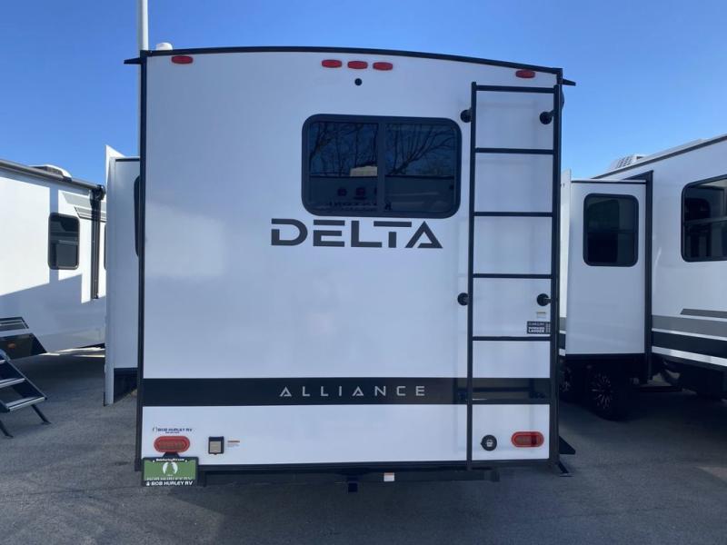 Form and function work together with every one of these Alliance RV Delta travel trailers! They are built with a walk-on roof with a seamless PVC roof covering, Mylar reinforced exterior seals, and a heated and enclosed underbelly to protect your unit. The commercial grade vinyl flooring will be easy to clean, and the oversized atrium windows throughout let in plenty of natural sunlight. With 62 cu. ft. of drop frame pass-through storage, you can bring along all of your essential camping gear plus it has USB charging for more convenience. There are many at home interior conveniences including a Bluetooth speaker, USB charging throughout, and even a pull-out kitchen trash can. Come find your favorite model today!
