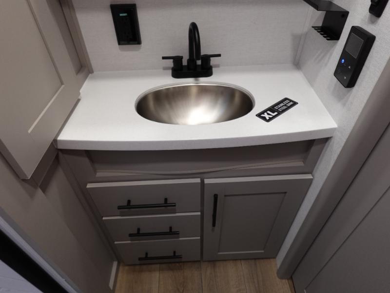Form and function works together with every one of these Alliance RV Delta travel trailers! They are built with a walk-on roof with a seamless PVC roof covering, Mylar reinforced exterior seals, and a heated and enclosed underbelly to protect your unit in all seasons. The commercial grade vinyl flooring will be easy to clean and the oversized atrium windows throughout let in plenty of natural sunlight. With 62 cu. ft. of drop frame pass-through storage, you can bring along all of your essential camping gear plus it has USB charging for more convenience. There are many at home interior conveniences including a Bluetooth speaker, USB charging throughout, and even a pull-out kitchen trash can. Come find your favorite model today!