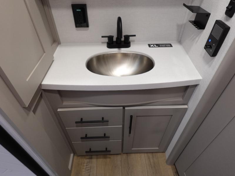 Form and function works together with every one of these Alliance RV Delta travel trailers! They are built with a walk-on roof with a seamless PVC roof covering, Mylar reinforced exterior seals, and a heated and enclosed underbelly to protect your unit in all seasons. The commercial grade vinyl flooring will be easy to clean and the oversized atrium windows throughout let in plenty of natural sunlight. With 62 cu. ft. of drop frame pass-through storage, you can bring along all of your essential camping gear plus it has USB charging for more convenience. There are many at home interior conveniences including a Bluetooth speaker, USB charging throughout, and even a pull-out kitchen trash can. Come find your favorite model today!