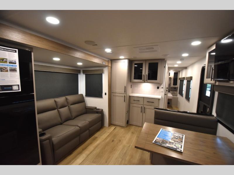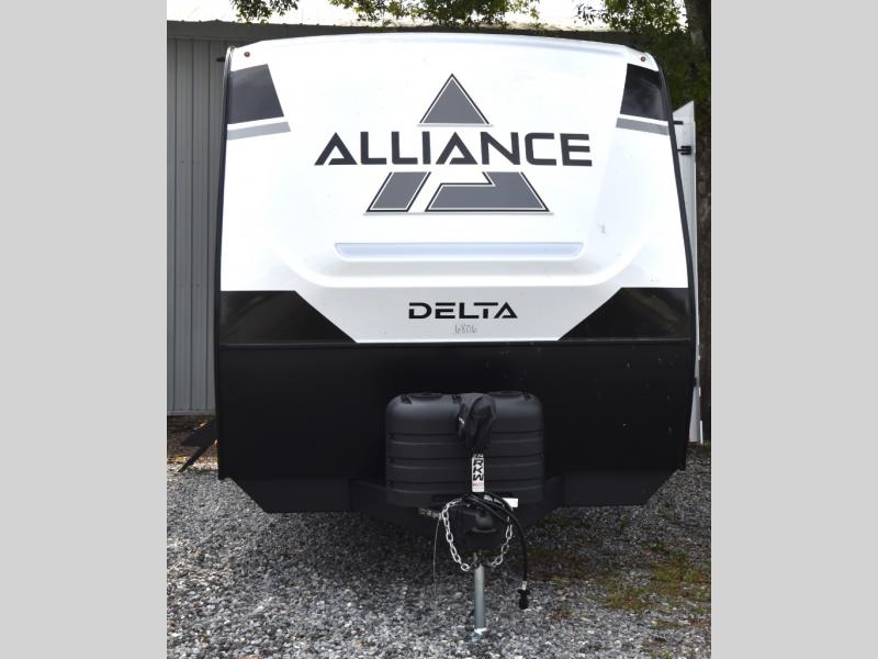 Form and function works together with every one of these Alliance RV Delta travel trailers! They are built with a walk-on roof with a seamless PVC roof covering, Mylar reinforced exterior seals, and a heated and enclosed underbelly to protect your unit in all seasons. The commercial grade vinyl flooring will be easy to clean and the oversized atrium windows throughout let in plenty of natural sunlight. With 62 cu. ft. of drop frame pass-through storage, you can bring along all of your essential camping gear plus it has USB charging for more convenience. There are many at home interior conveniences including a Bluetooth speaker, USB charging throughout, and even a pull-out kitchen trash can. Come find your favorite model today!