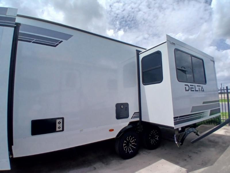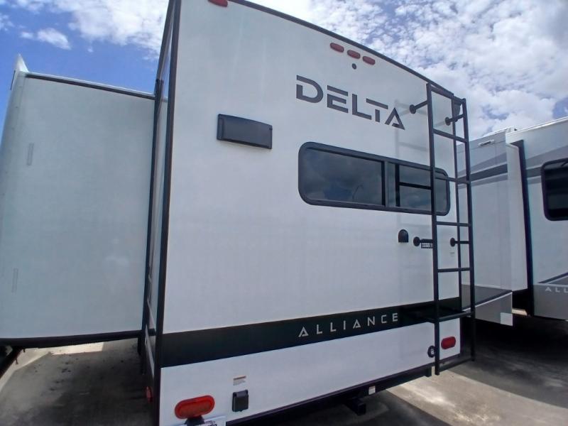 Form and function work together with every one of these Alliance RV Delta travel trailers! They are built with a walk-on roof with a seamless PVC roof covering, Mylar reinforced exterior seals, and a heated and enclosed underbelly to protect your unit. The commercial grade vinyl flooring will be easy to clean, and the oversized atrium windows throughout let in plenty of natural sunlight. With 62 cu. ft. of drop frame pass-through storage, you can bring along all of your essential camping gear plus it has USB charging for more convenience. There are many at home interior conveniences including a Bluetooth speaker, USB charging throughout, and even a pull-out kitchen trash can. Come find your favorite model today!