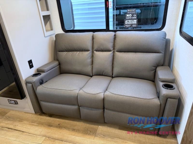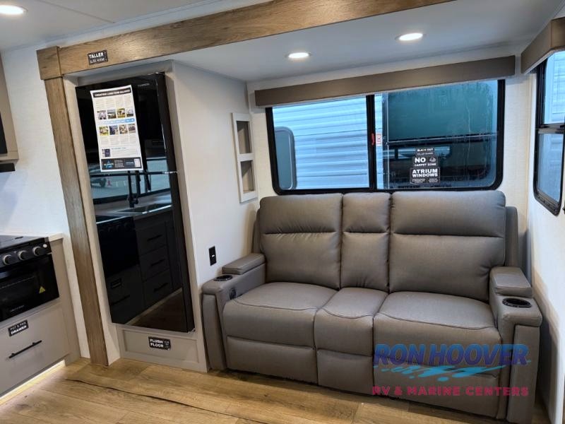 Form and function works together with every one of these Alliance RV Delta travel trailers! They are built with a walk-on roof with a seamless PVC roof covering, Mylar reinforced exterior seals, and a heated and enclosed underbelly to protect your unit in all seasons. The commercial grade vinyl flooring will be easy to clean and the oversized atrium windows throughout let in plenty of natural sunlight. With 62 cu. ft. of drop frame pass-through storage, you can bring along all of your essential camping gear plus it has USB charging for more convenience. There are many at home interior conveniences including a Bluetooth speaker, USB charging throughout, and even a pull-out kitchen trash can. Come find your favorite model today!