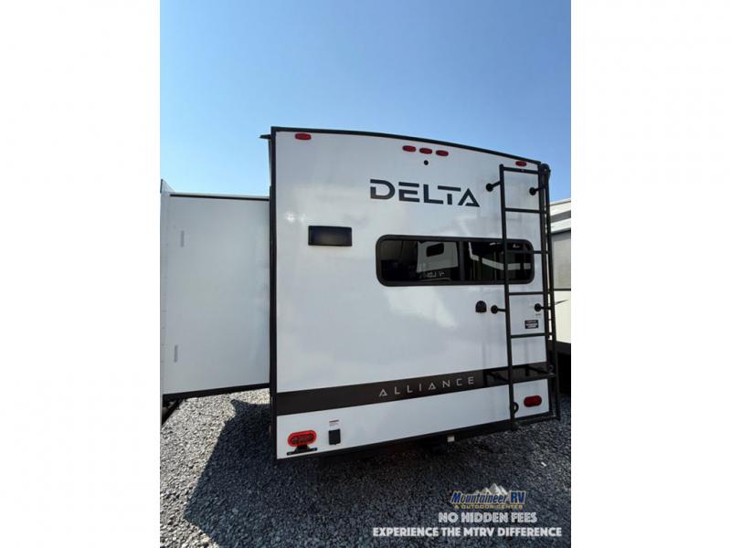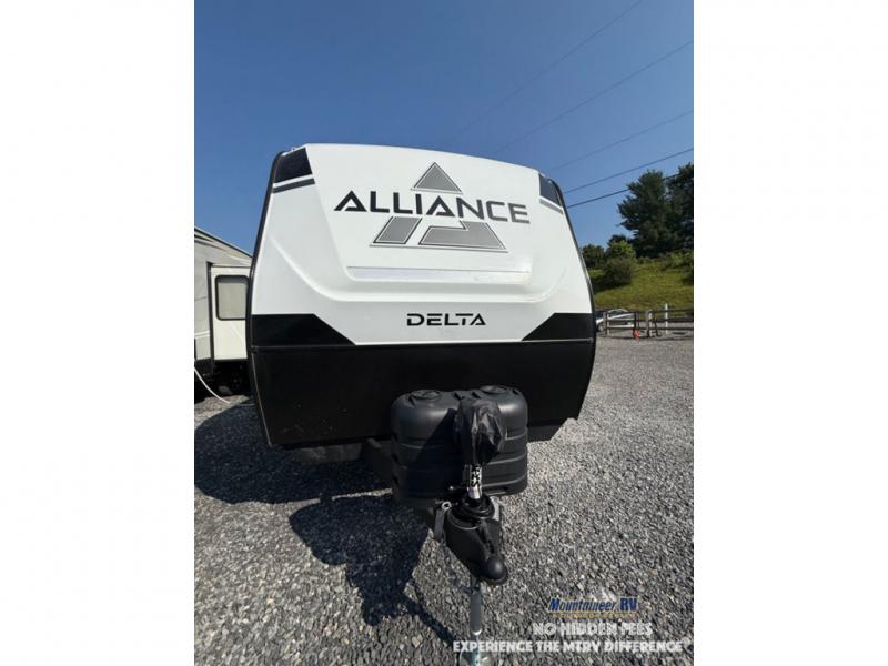 Form and function works together with every one of these Alliance RV Delta travel trailers! They are built with a walk-on roof with a seamless PVC roof covering, Mylar reinforced exterior seals, and a heated and enclosed underbelly to protect your unit in all seasons. The commercial grade vinyl flooring will be easy to clean and the oversized atrium windows throughout let in plenty of natural sunlight. With 62 cu. ft. of drop frame pass-through storage, you can bring along all of your essential camping gear plus it has USB charging for more convenience. There are many at home interior conveniences including a Bluetooth speaker, USB charging throughout, and even a pull-out kitchen trash can. Come find your favorite model today!