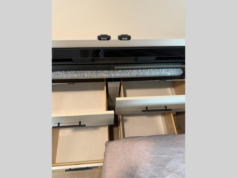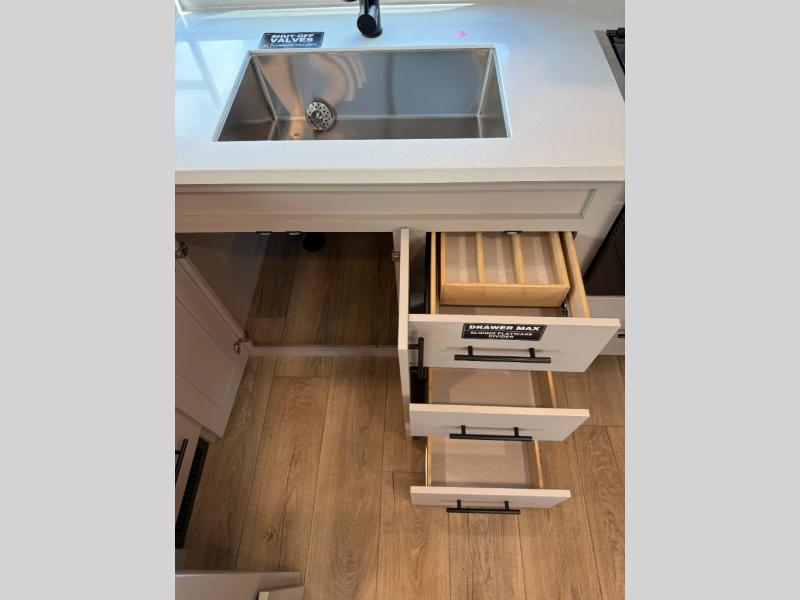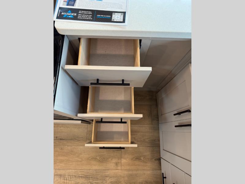 Form and function works together with every one of these Alliance RV Delta travel trailers! They are built with a walk-on roof with a seamless PVC roof covering, Mylar reinforced exterior seals, and a heated and enclosed underbelly to protect your unit in all seasons. The commercial grade vinyl flooring will be easy to clean and the oversized atrium windows throughout let in plenty of natural sunlight. With 62 cu. ft. of drop frame pass-through storage, you can bring along all of your essential camping gear plus it has USB charging for more convenience. There are many at home interior conveniences including a Bluetooth speaker, USB charging throughout, and even a pull-out kitchen trash can. Come find your favorite model today!