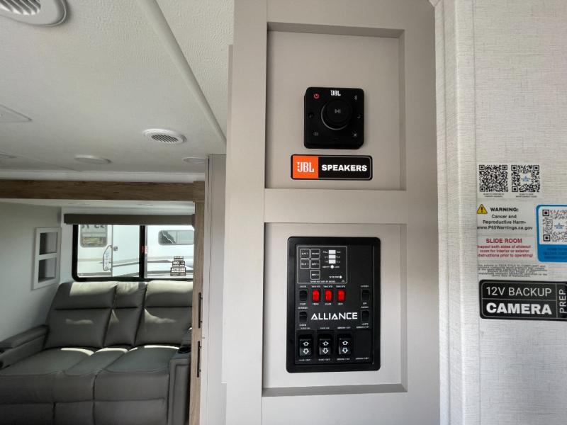 Form and function works together with every one of these Alliance RV Delta travel trailers! They are built with a walk-on roof with a seamless PVC roof covering, Mylar reinforced exterior seals, and a heated and enclosed underbelly to protect your unit in all seasons. The commercial grade vinyl flooring will be easy to clean and the oversized atrium windows throughout let in plenty of natural sunlight. With 62 cu. ft. of drop frame pass-through storage, you can bring along all of your essential camping gear plus it has USB charging for more convenience. There are many at home interior conveniences including a Bluetooth speaker, USB charging throughout, and even a pull-out kitchen trash can. Come find your favorite model today!