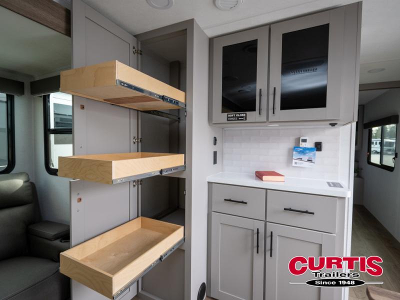 Form and function work together with every one of these Alliance RV Delta travel trailers! They are built with a walk-on roof with a seamless PVC roof covering, Mylar reinforced exterior seals, and a heated and enclosed underbelly to protect your unit. The commercial grade vinyl flooring will be easy to clean, and the oversized atrium windows throughout let in plenty of natural sunlight. With 62 cu. ft. of drop frame pass-through storage, you can bring along all of your essential camping gear plus it has USB charging for more convenience. There are many at home interior conveniences including a Bluetooth speaker, USB charging throughout, and even a pull-out kitchen trash can. Come find your favorite model today!