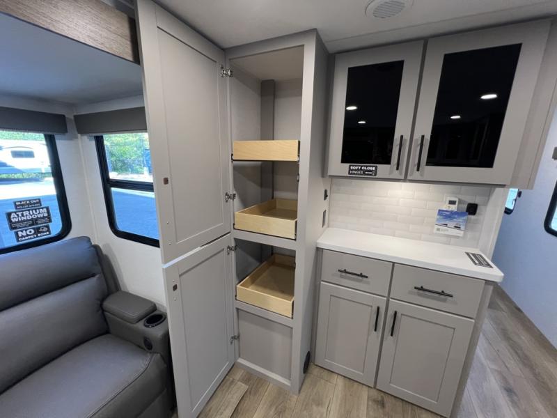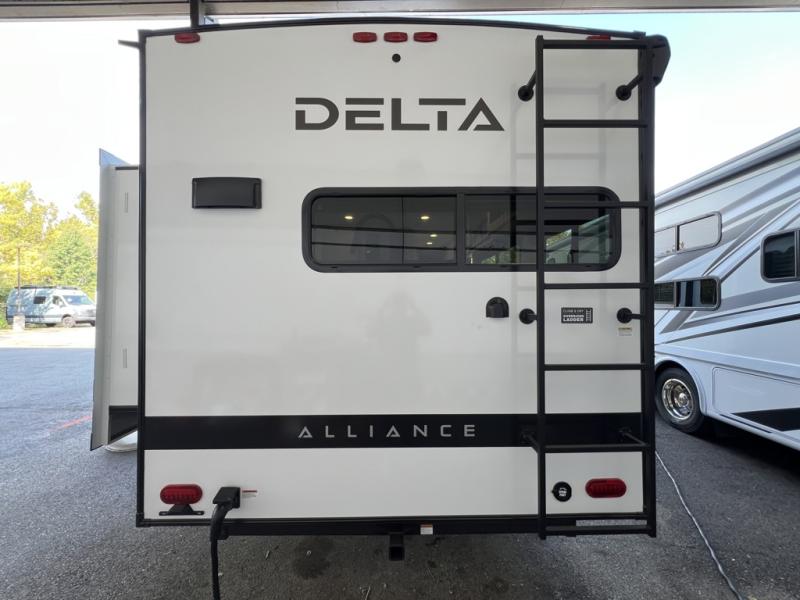 Form and function work together with every one of these Alliance RV Delta travel trailers! They are built with a walk-on roof with a seamless PVC roof covering, Mylar reinforced exterior seals, and a heated and enclosed underbelly to protect your unit. The commercial grade vinyl flooring will be easy to clean, and the oversized atrium windows throughout let in plenty of natural sunlight. With 62 cu. ft. of drop frame pass-through storage, you can bring along all of your essential camping gear plus it has USB charging for more convenience. There are many at home interior conveniences including a Bluetooth speaker, USB charging throughout, and even a pull-out kitchen trash can. Come find your favorite model today!