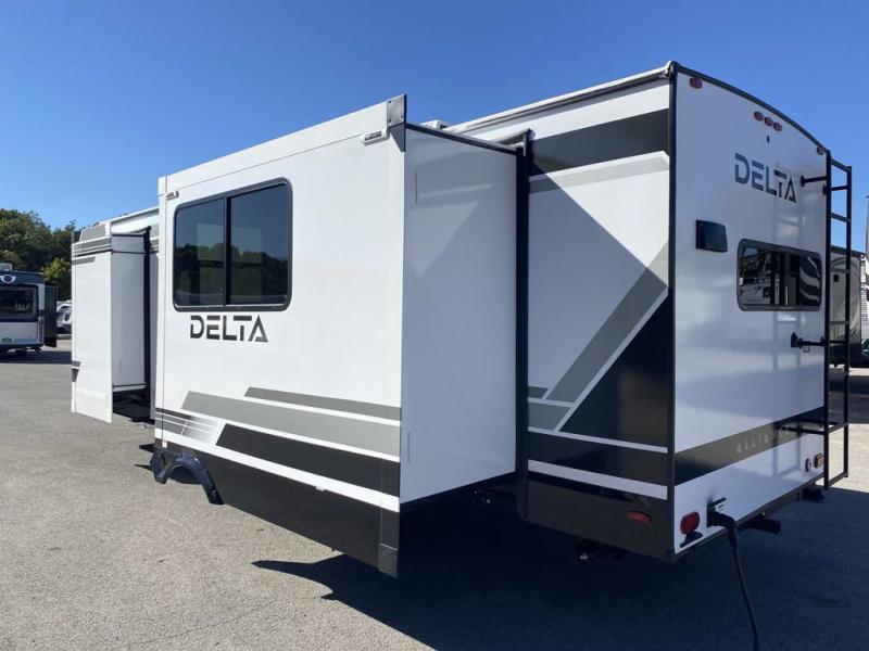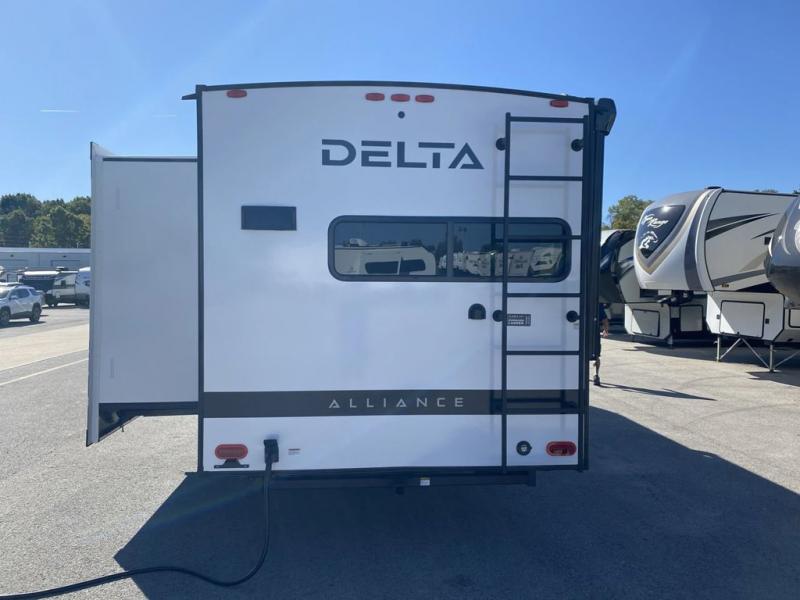 Form and function work together with every one of these Alliance RV Delta travel trailers! They are built with a walk-on roof with a seamless PVC roof covering, Mylar reinforced exterior seals, and a heated and enclosed underbelly to protect your unit. The commercial grade vinyl flooring will be easy to clean, and the oversized atrium windows throughout let in plenty of natural sunlight. With 62 cu. ft. of drop frame pass-through storage, you can bring along all of your essential camping gear plus it has USB charging for more convenience. There are many at home interior conveniences including a Bluetooth speaker, USB charging throughout, and even a pull-out kitchen trash can. Come find your favorite model today!