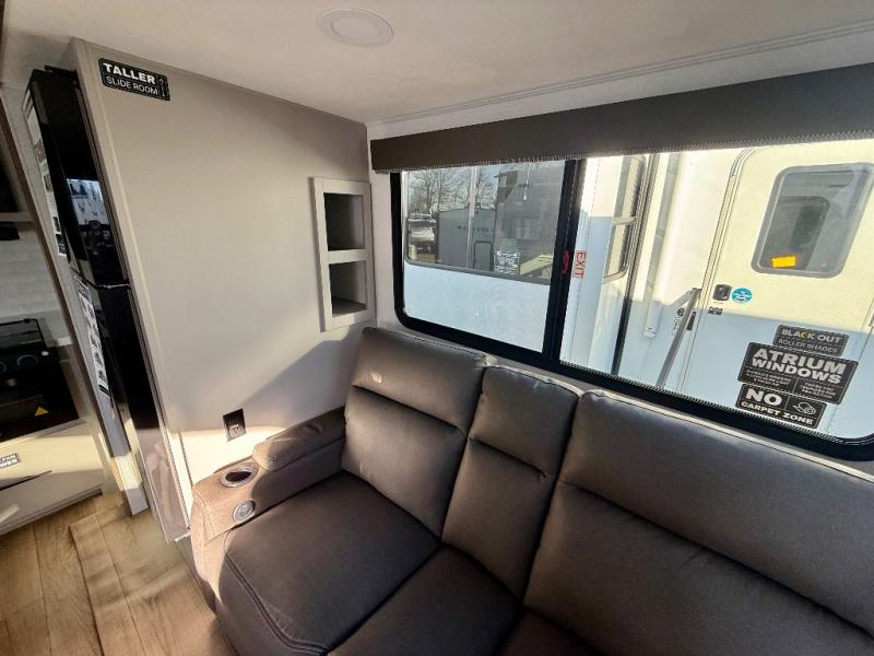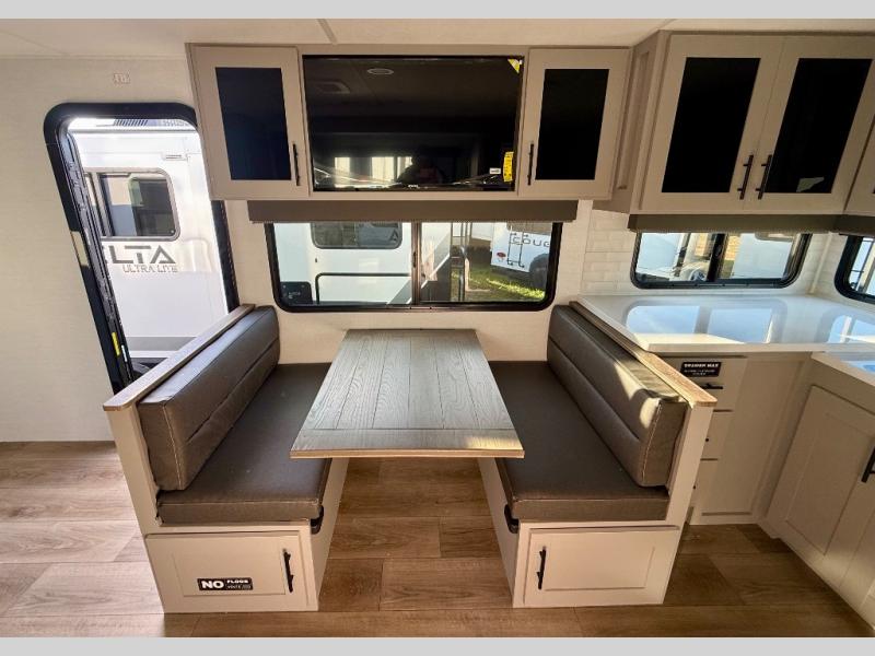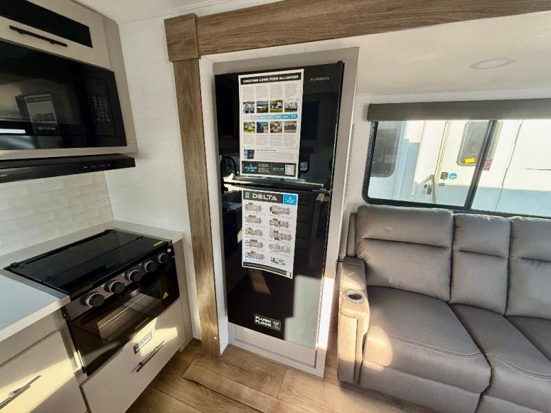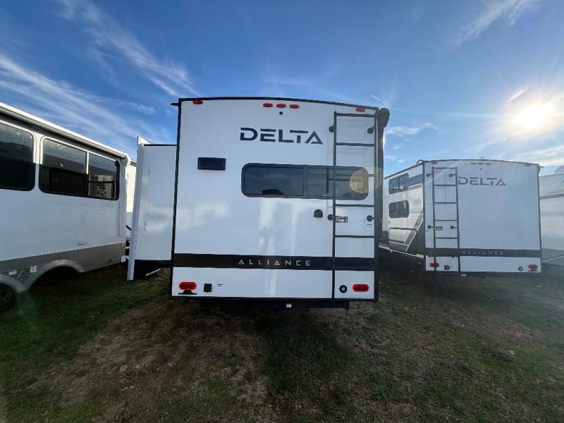 Form and function work together with every one of these Alliance RV Delta travel trailers! They are built with a walk-on roof with a seamless PVC roof covering, Mylar reinforced exterior seals, and a heated and enclosed underbelly to protect your unit. The commercial grade vinyl flooring will be easy to clean, and the oversized atrium windows throughout let in plenty of natural sunlight. With 62 cu. ft. of drop frame pass-through storage, you can bring along all of your essential camping gear plus it has USB charging for more convenience. There are many at home interior conveniences including a Bluetooth speaker, USB charging throughout, and even a pull-out kitchen trash can. Come find your favorite model today!
