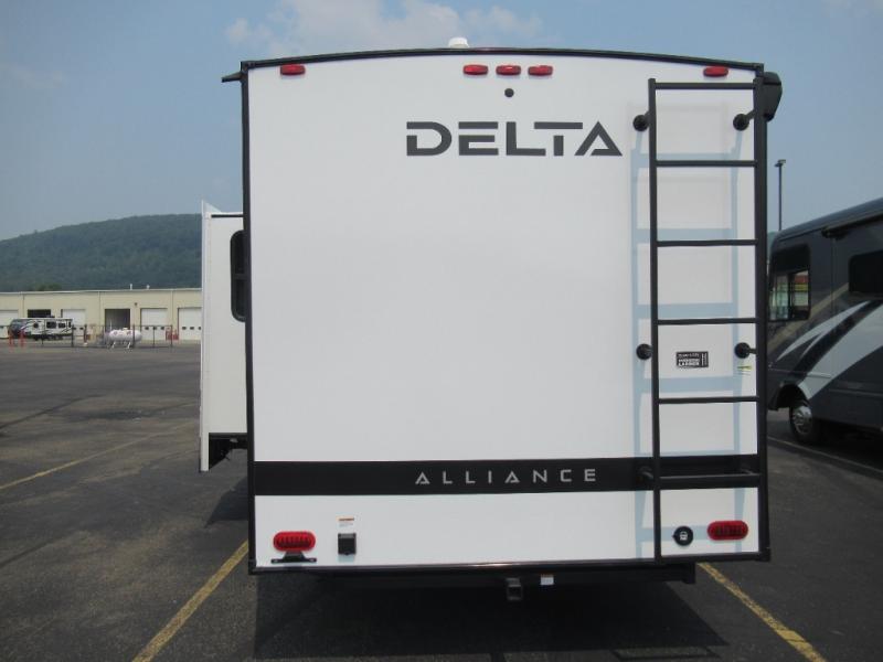Form and function works together with every one of these Alliance RV Delta travel trailers! They are built with a walk-on roof with a seamless PVC roof covering, Mylar reinforced exterior seals, and a heated and enclosed underbelly to protect your unit in all seasons. The commercial grade vinyl flooring will be easy to clean and the oversized atrium windows throughout let in plenty of natural sunlight. With 62 cu. ft. of drop frame pass-through storage, you can bring along all of your essential camping gear plus it has USB charging for more convenience. There are many at home interior conveniences including a Bluetooth speaker, USB charging throughout, and even a pull-out kitchen trash can. Come find your favorite model today!
