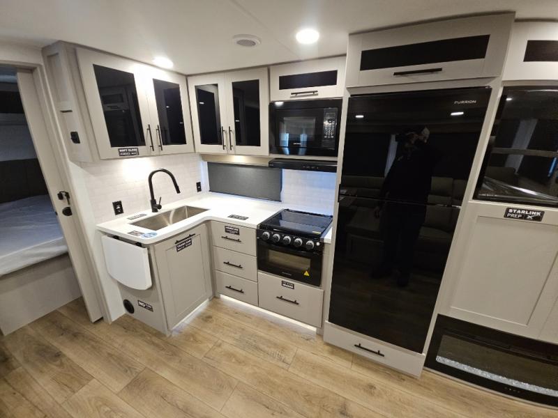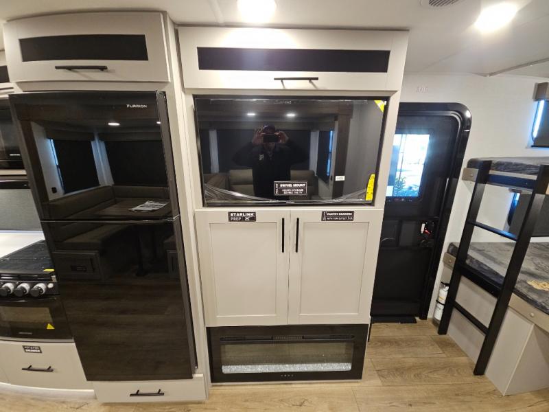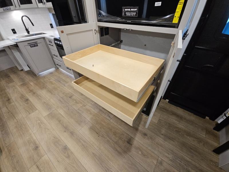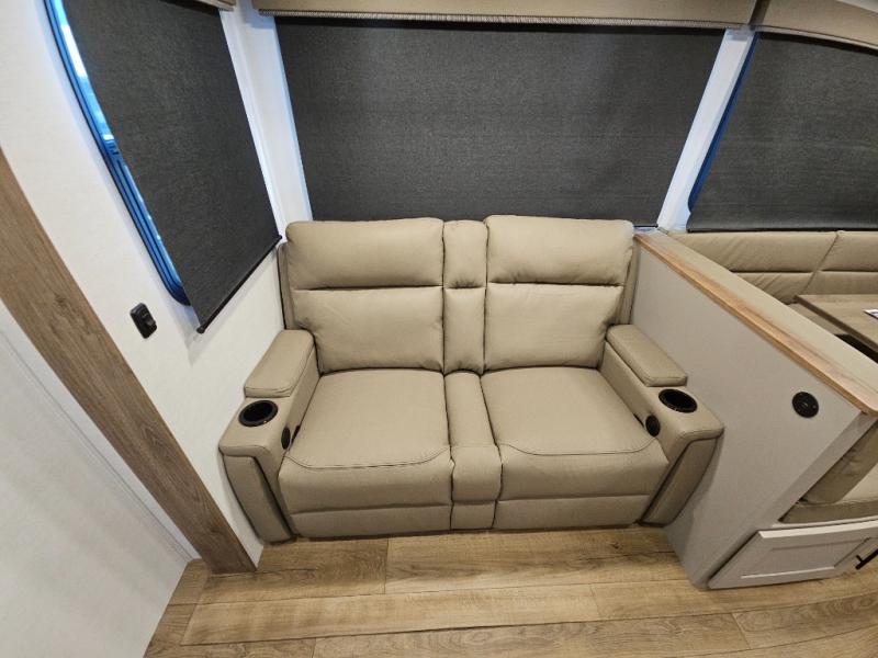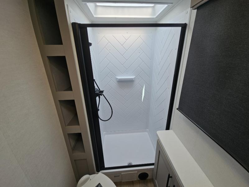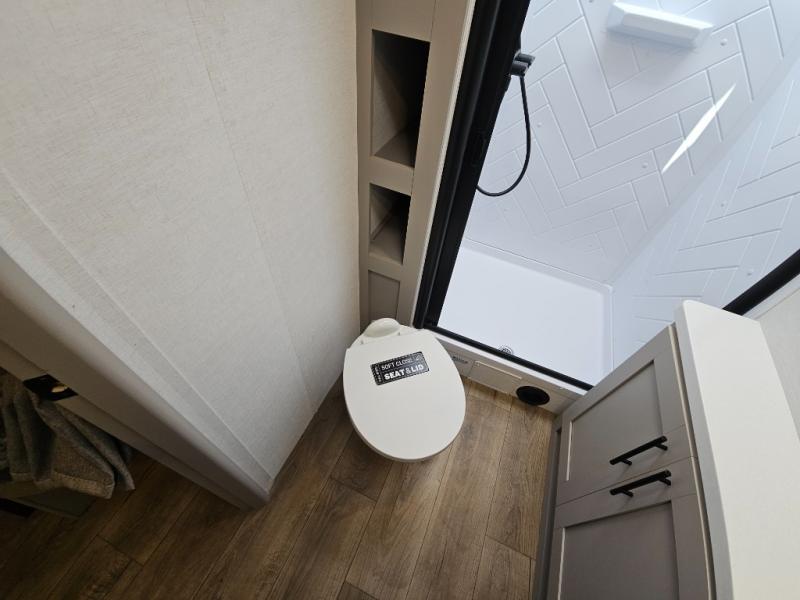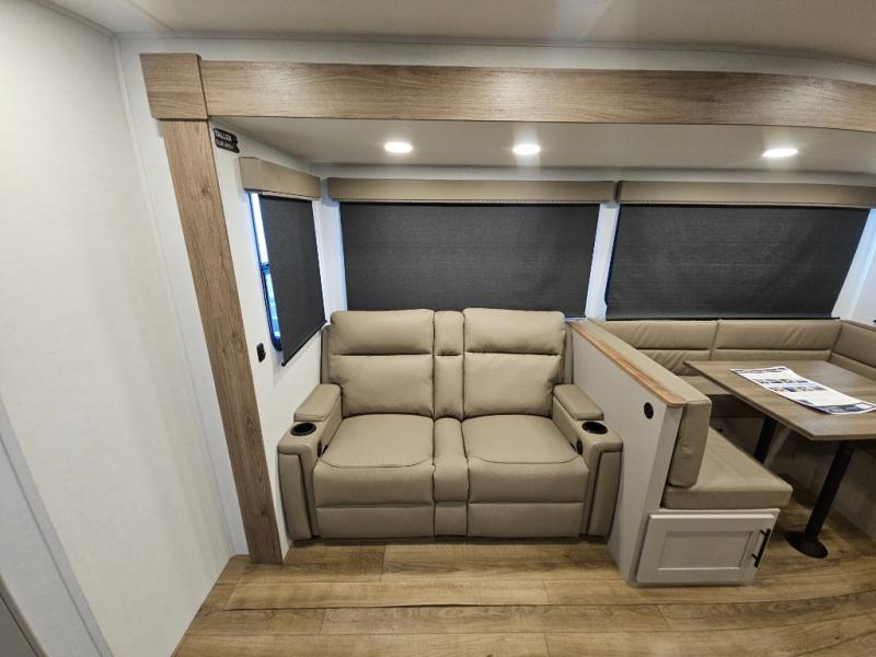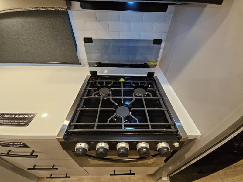 The perfect travel trailer for a larger family or one that enjoys traveling with friends! One large slide opens up the interior living space nice and features a U-shaped dinette and theater seating to provide plenty of seating for everyone. Enjoy the 40" HDTV opposite the seating for a movie indoors, and game night will be easy with everyone at the dinette which can also be converted for added sleeping if needed. The double entry doors will make loading and unloading simple and allows you to easily slip in and out of the private bedroom for a morning walk. You can easily prepare all of your favorite meals and snacks with the kitchen amenities provided inside. A three-burner range allows you to easily cook indoors, or you can enjoy cooking outside using the outdoor griddle/grill if you like. There is a 10-cu. ft. 12V refrigerator to keep all of your perishables and drinks nice and cold, plus a large sink for dishes and cleaning up, and there is also a flip-up counter extension for more prep space. You will also appreciate the rear corner bath featuring a 30" x 36" shower, vanity with sink, soft close porcelain toilet with foot flush, and linen cabinet for your towels.