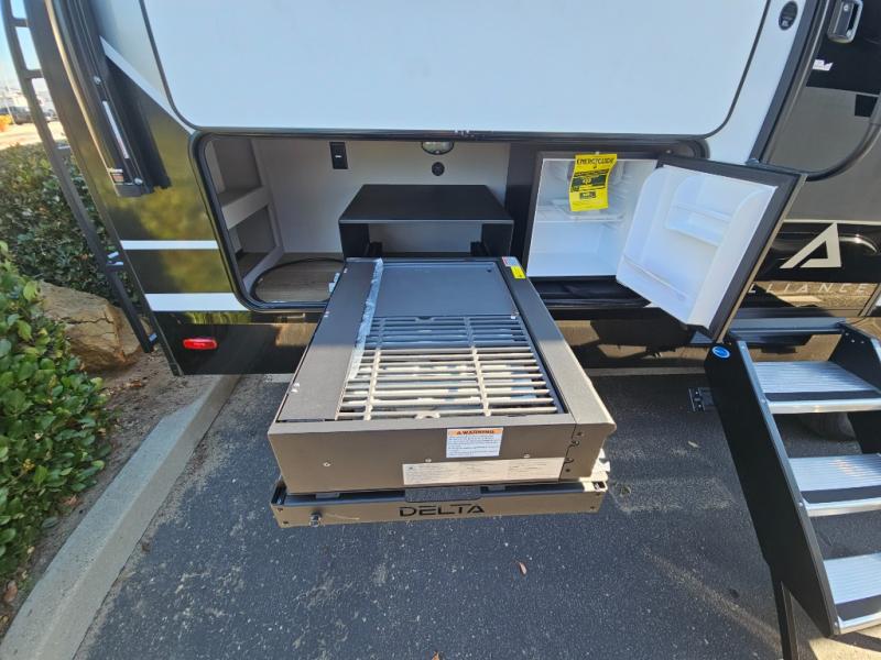 Form and function work together with every one of these Alliance RV Delta travel trailers! They are built with a walk-on roof with a seamless PVC roof covering, Mylar reinforced exterior seals, and a heated and enclosed underbelly to protect your unit. The commercial grade vinyl flooring will be easy to clean, and the oversized atrium windows throughout let in plenty of natural sunlight. With 62 cu. ft. of drop frame pass-through storage, you can bring along all of your essential camping gear plus it has USB charging for more convenience. There are many at home interior conveniences including a Bluetooth speaker, USB charging throughout, and even a pull-out kitchen trash can. Come find your favorite model today!