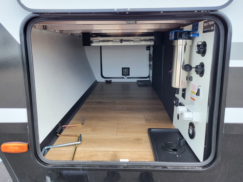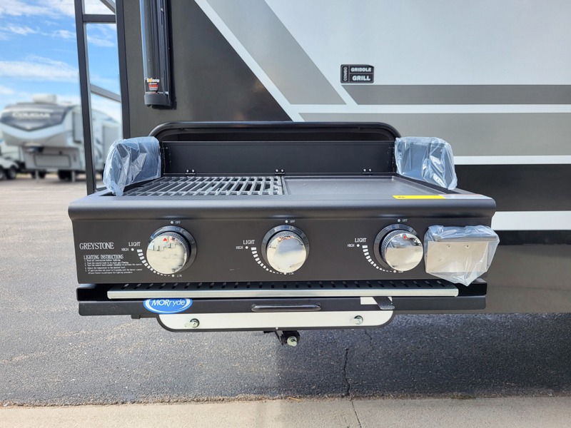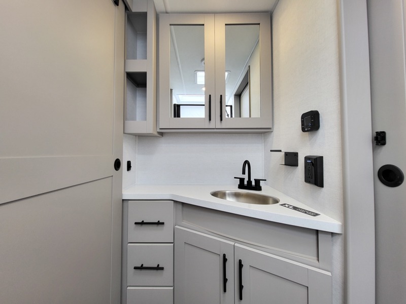 Heading towards the front lies a large central bathroom with a 30??×?36? shower, vanity, and a porcelain foot-flush toilet. Following this you will discover a private bedroom with a residential queen bed, dual wardrobe nightstands, and overhead storage—enclosed by a sliding door for privacy and effective separation from the rest of the unit . Under the convenient Independence Package, the trailer is built with double-insulated front walls, PVC roofing, Azdel composite sidewalls, and USB ports throughout for modern comfort and durability . On the exterior, dual entry doors, generous pass-through storage, hot/cold spray ports, outdoor griddle, and dual awnings round out the hands-on convenience for camping and tailgating.