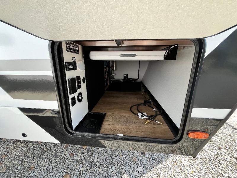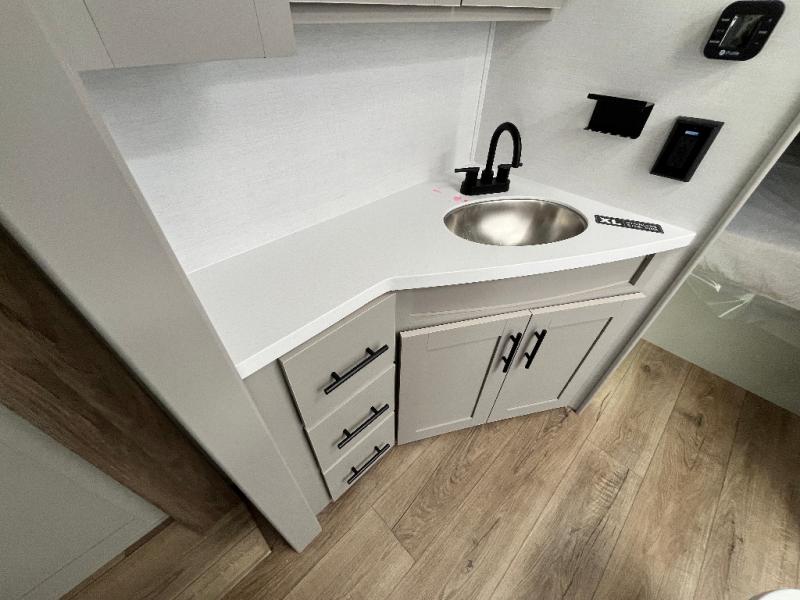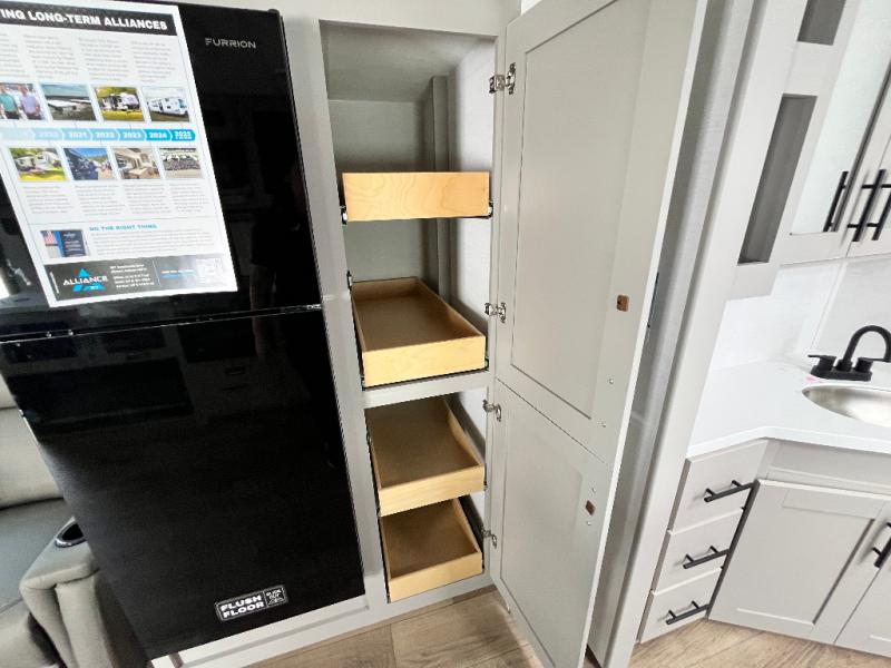 Form and function work together with every one of these Alliance RV Delta travel trailers! They are built with a walk-on roof with a seamless PVC roof covering, Mylar reinforced exterior seals, and a heated and enclosed underbelly to protect your unit. The commercial grade vinyl flooring will be easy to clean, and the oversized atrium windows throughout let in plenty of natural sunlight. With 62 cu. ft. of drop frame pass-through storage, you can bring along all of your essential camping gear plus it has USB charging for more convenience. There are many at home interior conveniences including a Bluetooth speaker, USB charging throughout, and even a pull-out kitchen trash can. Come find your favorite model today!