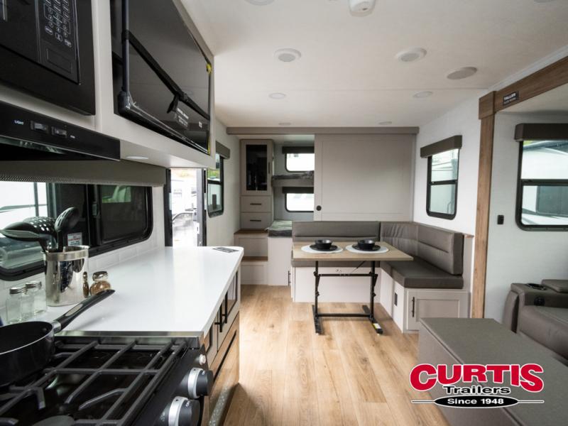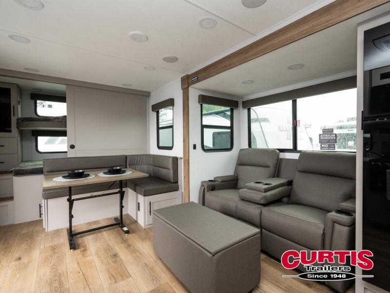 Form and function work together with every one of these Alliance RV Delta travel trailers! They are built with a walk-on roof with a seamless PVC roof covering, Mylar reinforced exterior seals, and a heated and enclosed underbelly to protect your unit. The commercial grade vinyl flooring will be easy to clean, and the oversized atrium windows throughout let in plenty of natural sunlight. With 62 cu. ft. of drop frame pass-through storage, you can bring along all of your essential camping gear plus it has USB charging for more convenience. There are many at home interior conveniences including a Bluetooth speaker, USB charging throughout, and even a pull-out kitchen trash can. Come find your favorite model today!