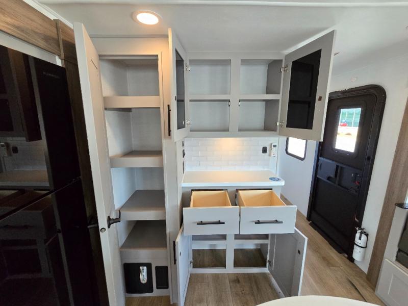 Form and function works together with every one of these Alliance RV Delta travel trailers! They are built with a walk-on roof with a seamless PVC roof covering, Mylar reinforced exterior seals, and a heated and enclosed underbelly to protect your unit in all seasons. The commercial grade vinyl flooring will be easy to clean and the oversized atrium windows throughout let in plenty of natural sunlight. With 62 cu. ft. of drop frame pass-through storage, you can bring along all of your essential camping gear plus it has USB charging for more convenience. There are many at home interior conveniences including a Bluetooth speaker, USB charging throughout, and even a pull-out kitchen trash can. Come find your favorite model today!