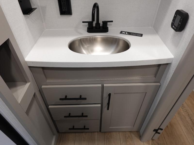 Form and function works together with every one of these Alliance RV Delta travel trailers! They are built with a walk-on roof with a seamless PVC roof covering, Mylar reinforced exterior seals, and a heated and enclosed underbelly to protect your unit in all seasons. The commercial grade vinyl flooring will be easy to clean and the oversized atrium windows throughout let in plenty of natural sunlight. With 62 cu. ft. of drop frame pass-through storage, you can bring along all of your essential camping gear plus it has USB charging for more convenience. There are many at home interior conveniences including a Bluetooth speaker, USB charging throughout, and even a pull-out kitchen trash can. Come find your favorite model today!